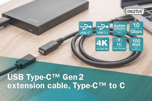 Dieses USB Type-C Verlängerungskabel ermöglicht die Nutzungsdistanz der Typ-C-Schnittstelle am Notebook, Tablet, Smartphone oder an der Dockingstation zu verlängern.
