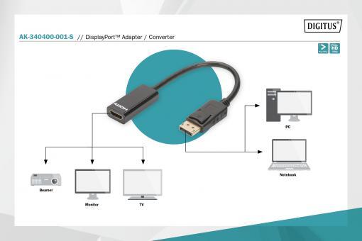 Digitus DisplayPort-Adapterkabel - DisplayPort / HDMI 0,15m