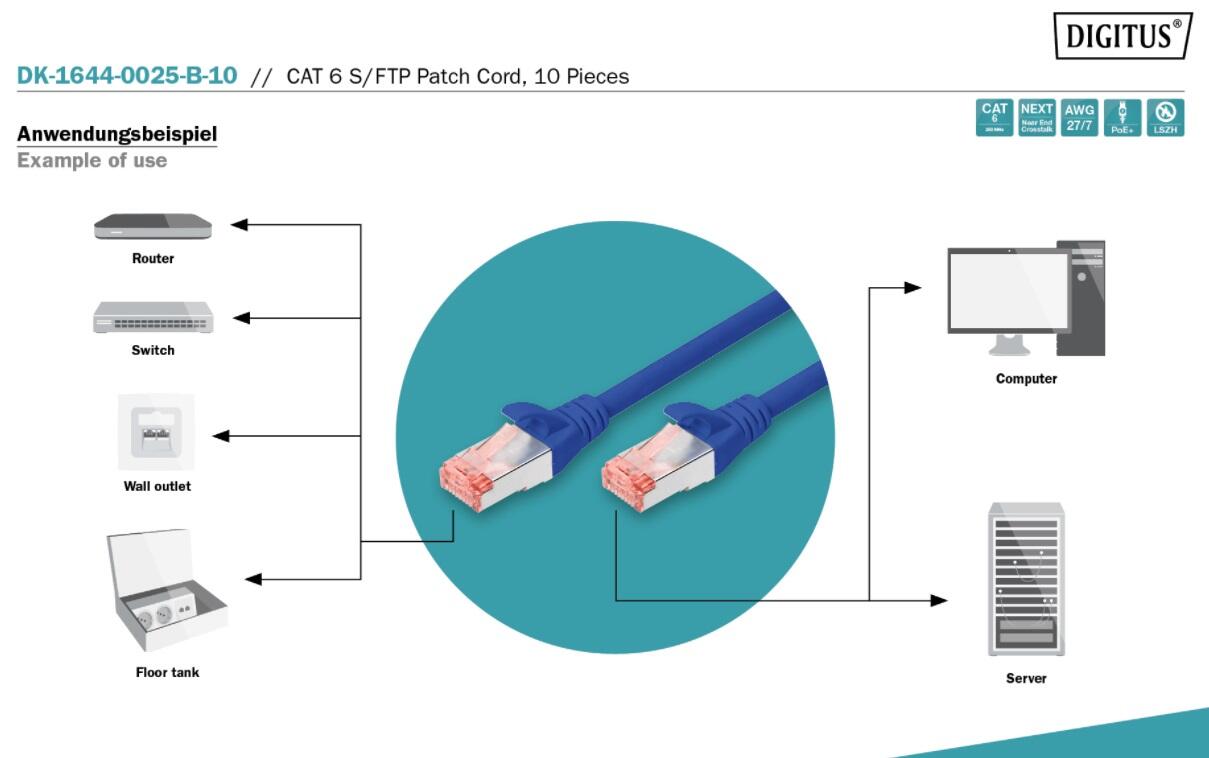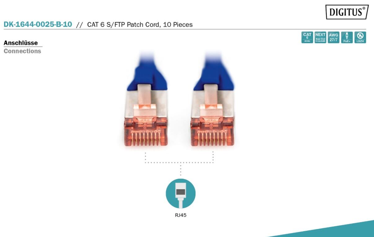 Digitus Professional CAT 6 S/FTP Patch-Kabel 0,25m RJ-45 (M) 10er Pack blau Patchkabel rund DK-1644-0025-B-10