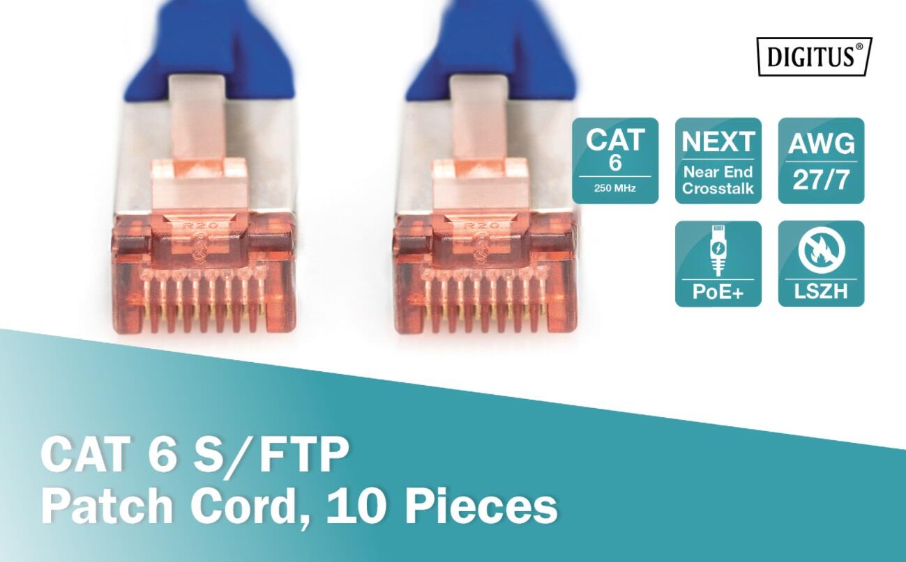Digitus Professional CAT 6 S/FTP Patch-Kabel 0,25m RJ-45 (M) 10er Pack blau