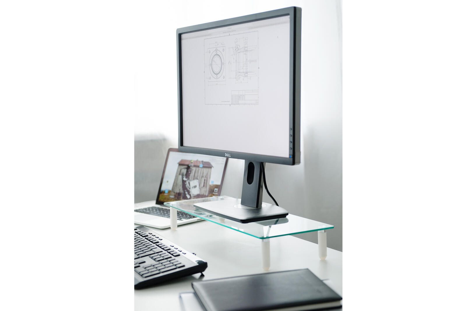 Mit der universellen Glas Monitorerhöhung können Sie Ihren Monitor auf einer ergonomischere Arbeitshöhe bringen und schaffen gleichzeitig Platz auf Ihrem Schreibtisch. Dank des gehärteten Sicherheitsglas und den rutschhemmenden Silikon Füßen sorgen Sie für einen sicheren Stand Ihres Monitors