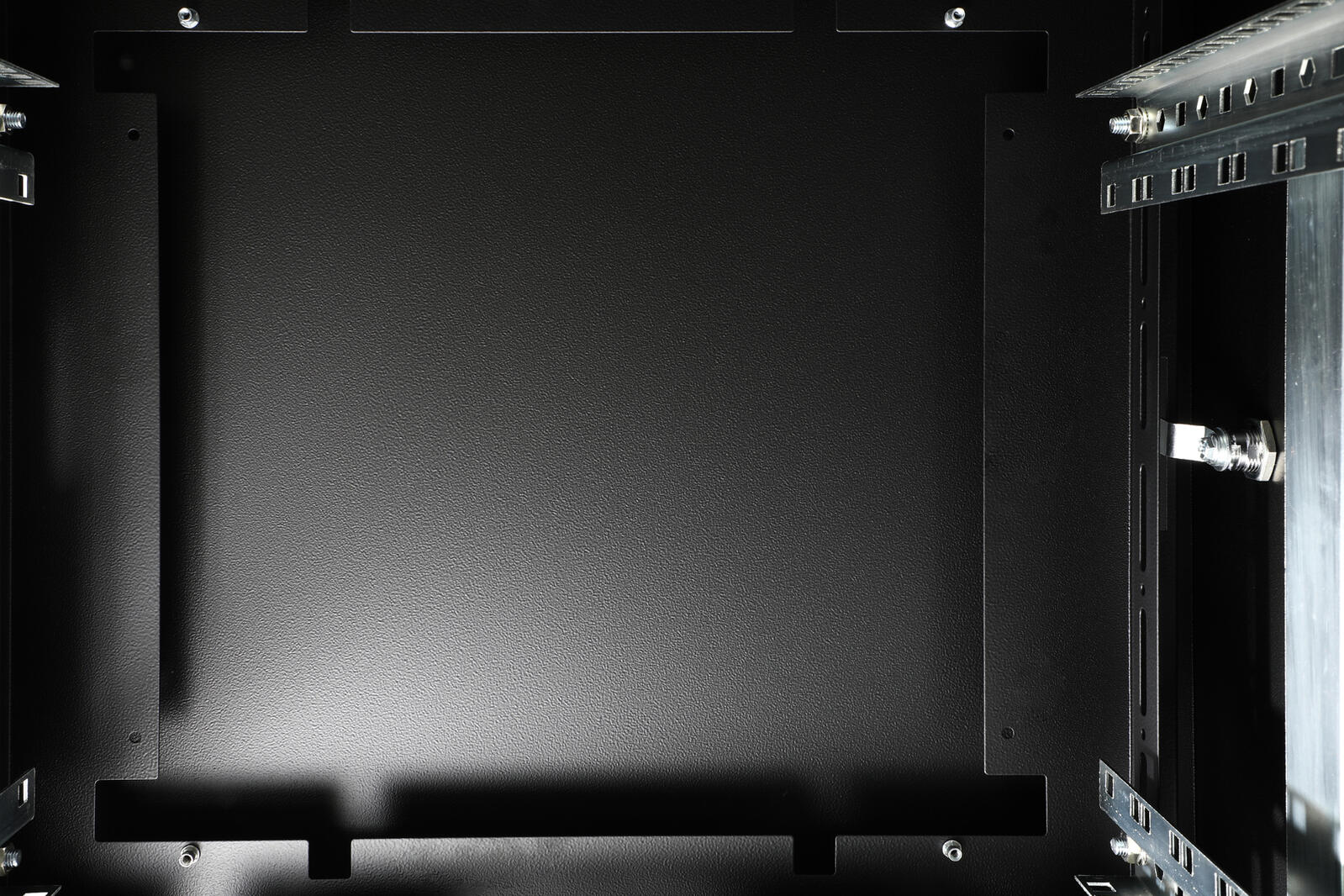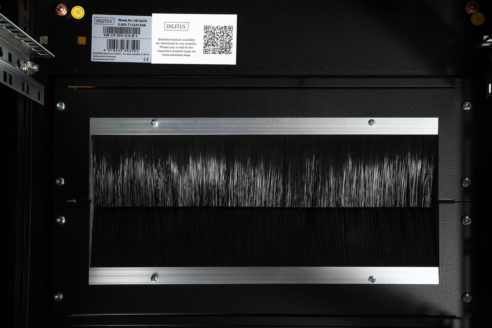 Die Netzwerkschränke der Unique Serie wurden für eine besonders komfortable und flexible Netzwerkverkabelung designt und produziert. Durchdachte Optimierungen bieten marktkonforme Stabilität bei maximaler Flexibilität. Ein modular, durch verschraubte 483 mm (19")-Blindplatten öffenbares Bodenchassis bietet ausreichend Platz für Kabel aller Art. Darüber hinaus befinden sich Kabeleinlässe mit Bürste im hinteren Bereich des Bodenchassis. Rückseitige Bürstenleisten ober- und unterhalb der Rücktür (ab 26HE), ermöglichen den Einsatz bei verschiedensten Anwendungsszenarien. Großzügige vertikale Kabelkanäle mit Kabelführungshilfen und Blende, verbaut in der Frontseite (ab 800 mm Schrankbreite), runden die vielfältigen Eigenschaften des Netzwerkschranks einwandfrei ab. Zwei Paar verkröpfte und galvanisch verzinkte, mit gegenläufig ablesbaren Höheneinheiten beschriftete 483 mm (19")-Profilschienen sind im Inneren verbaut. Sie lassen sich stufenlos verstellen und sind mit zusätzlichen Tiefenstreben im Schrank verbunden. Jeder Schrank ist eine robuste Stahlkonstruktion aus bis zu 1,5 mm starkem Stahlblech. Die Farbgebung erfolgt in Form von elektrostatischer Pulverbeschichtung in den Standardfarben Grau (RAL 7035) und Schwarz (RAL 9005). Modular abschließ- und abnehmbare Seitenwände sowie Türen verbessern die Zugänglichkeit. Ein Türanschlagswechsel kann vorgenommen werden. Des Weiteren sind die Schränke auf Grund der zerlegbaren Konstruktion bei Bedarf komplett demontierbar.