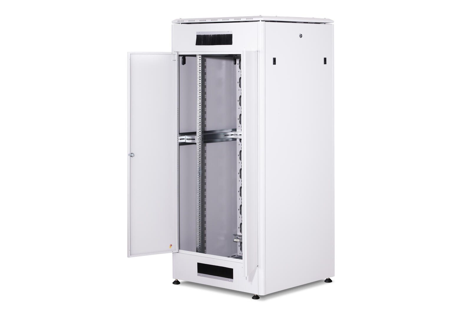 Abschließbare Rücktüre, einstellbare Tiefe, verschließbare Seitenwand, abnehmbares Seitenteil, Glastür, vertikale Kabelführung
