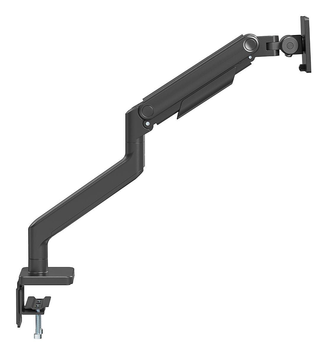 Leistungsstarke Monitorhalterung für maximale Flexibilität und Stabilität Diese vollbewegliche Tischhalterung wurde speziell für große Monitore bis zu 49 Zoll und einem Gewicht von bis zu 20 kg entwickelt – ideal für anspruchsvolle Arbeitsumgebungen und hochwertige Setups. Egal ob flacher Bildschirm oder Curved Display: Die Halterung bietet höchste Stabilität und Flexibilität in einem platzsparenden Design. Dank der robusten Heavy-Duty-Konstruktion trägt sie auch schwere Monitore mühelos und ermöglicht gleichzeitig präzise Ausrichtung in alle Richtungen. Die integrierte Federspannung sorgt für eine feinjustierte Gewichtsanpassung, sodass der Monitor mühelos in die gewünschte Position gebracht werden kann – ganz ohne Nachjustieren. Für maximale Benutzerfreundlichkeit sorgt die VESA Quick-Release-Funktion: Der Monitor lässt sich schnell und einfach montieren oder abnehmen. Die innovative Schnellverschlusskupplung erleichtert zudem die Verbindung der beiden Armsegmente und reduziert den Montageaufwand erheblich. Mit zwei flexiblen Befestigungsoptionen – Tischklemme oder Durchführung – lässt sich die Halterung an nahezu jedem Arbeitsplatz anbringen. Der integrierte 180°-Drehstopp verhindert ein unbeabsichtigtes Anschlagen an Wände oder benachbarte Bildschirme, während das clevere Kabelmanagement für einen aufgeräumten, professionellen Look sorgt. Ideal für Nutzer, die Wert auf Ergonomie, Stabilität und Funktionalität legen – ob im Büro, im Studio oder im Homeoffice.