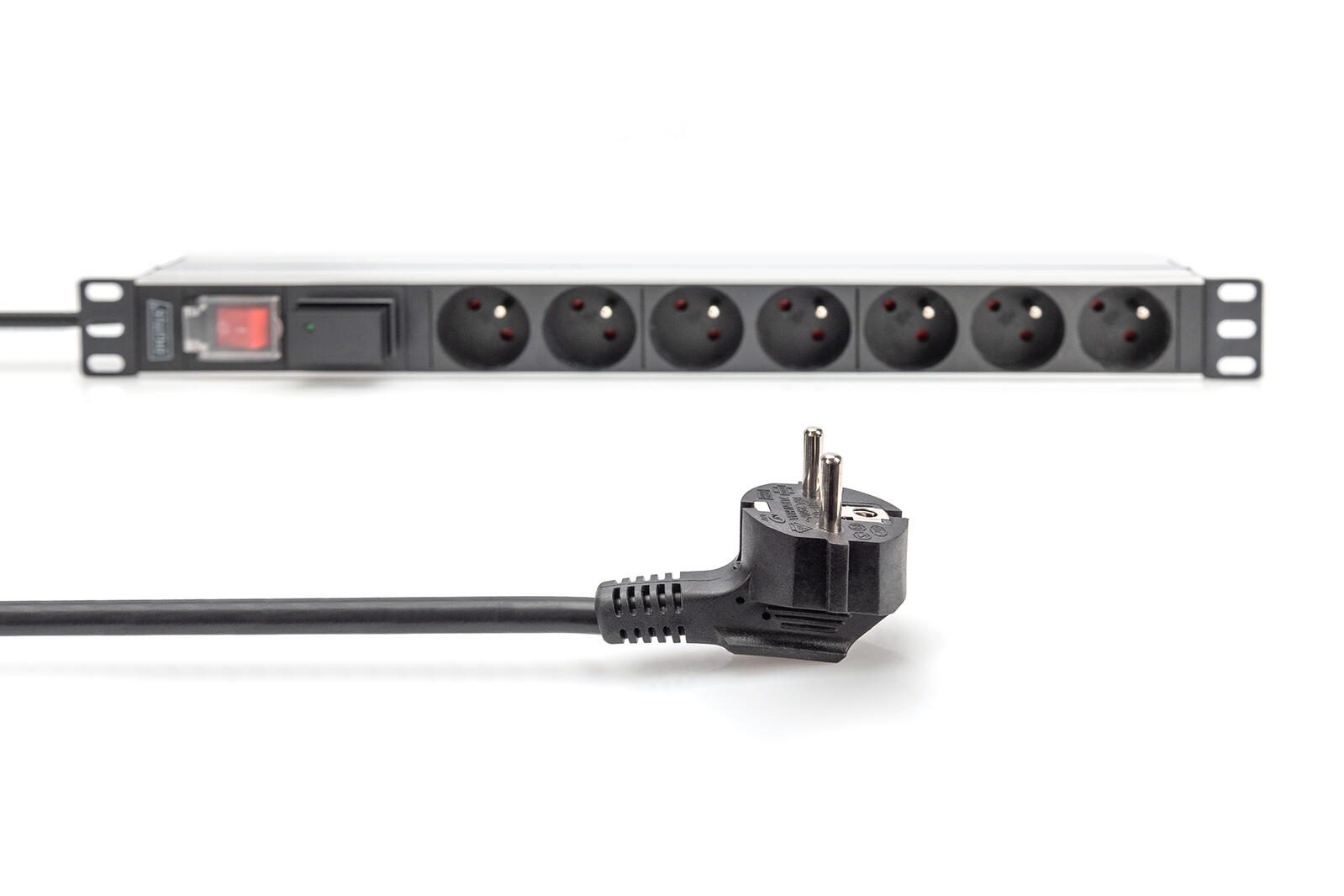 Digitus Steckdosenleiste mit Aluminiumprofil, Überspannungsschutz und Schalter, 7-fach CEE 7/5 Steckdosen, 2 m Zuleitung