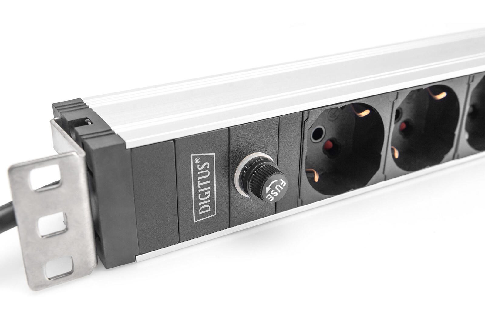Digitus Steckdosenleiste mit Aluminiumprofil und Vorsicherung, 8-fach Italienische Ausgang, 2 m Zuleitung IEC C14 Stecker