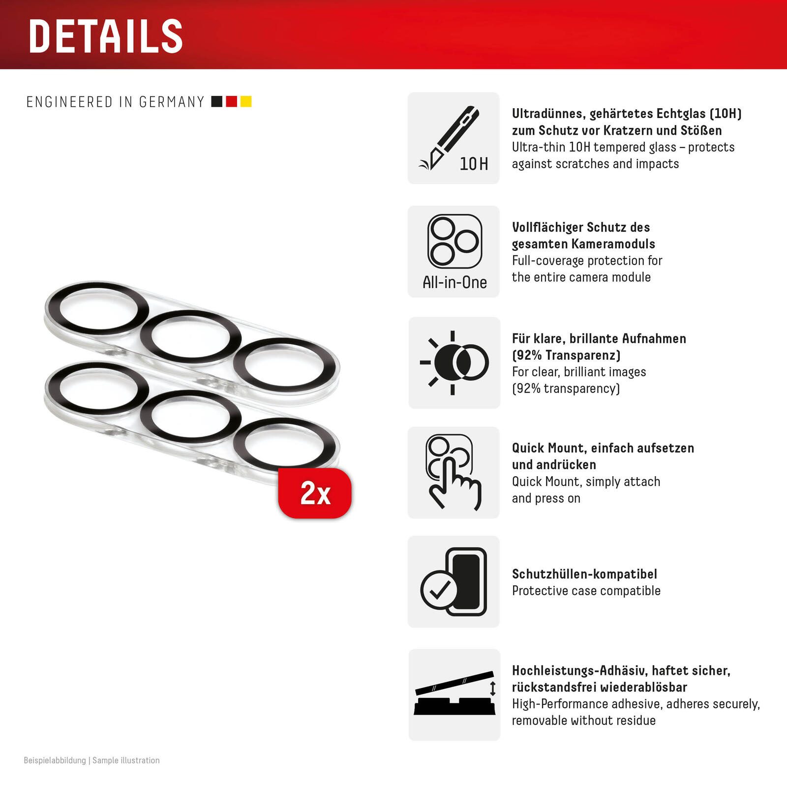 • All-in-One Glasabdeckung für das gesamte Kameramodul: Vollflächige Abdeckung aller Kameralinsen – einheitlich, elegant, sicher.