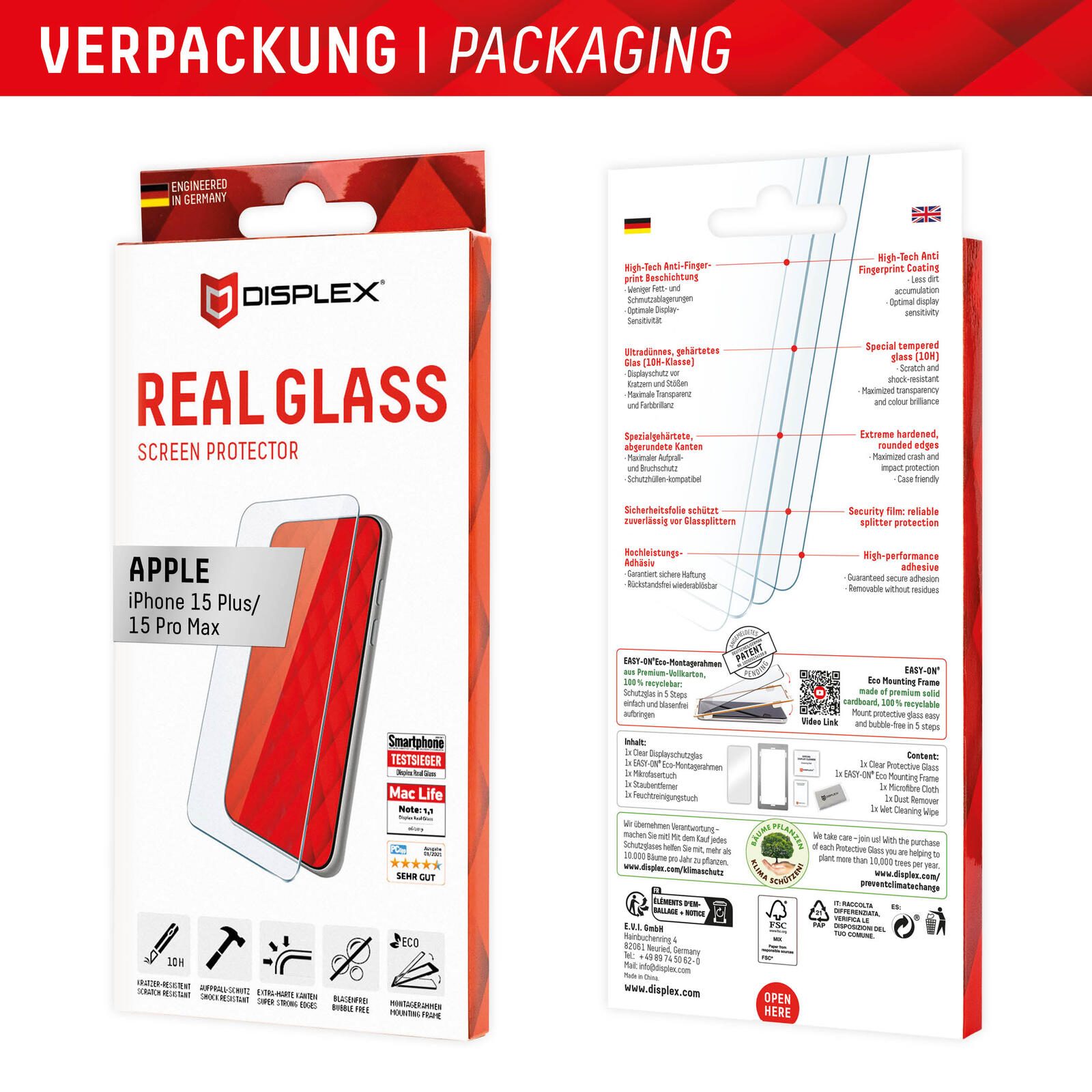 DISPLEX Panzerglas (10H, 2D) für Apple iPhone 15 Plus/15 Pro Max Eco-Montagerahmen, kratzer-resistent