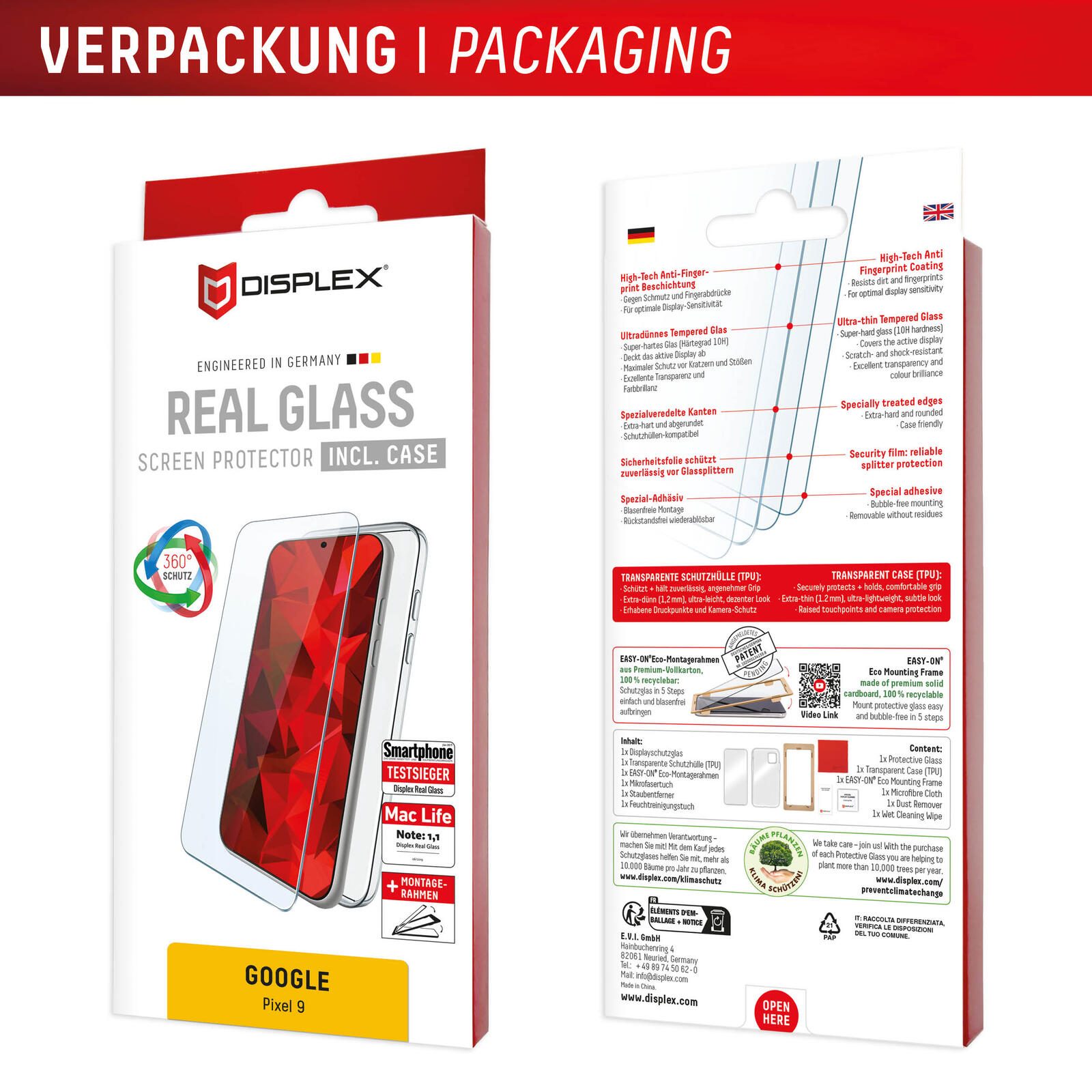 DISPLEX Panzerglas (10H) + Schutzhülle für Google Pixel 9 Eco-Montagerahmen, + Case, Tempered Glas, kratzer-resistente Schutzfolie