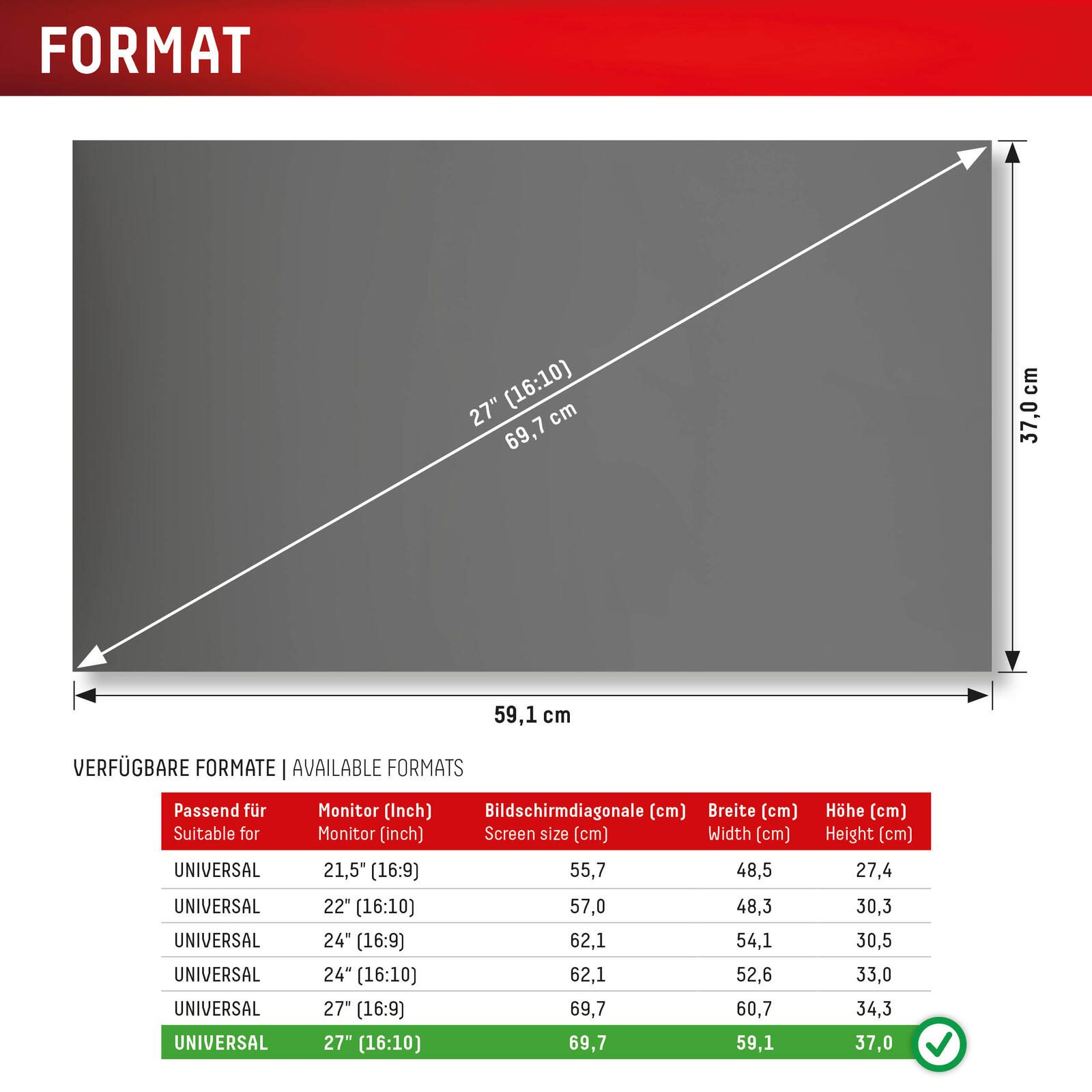 - Für Desktop Monitor 27'' (16:10), BxH: 59,1 x 37 cm, Diagonale: 69,7