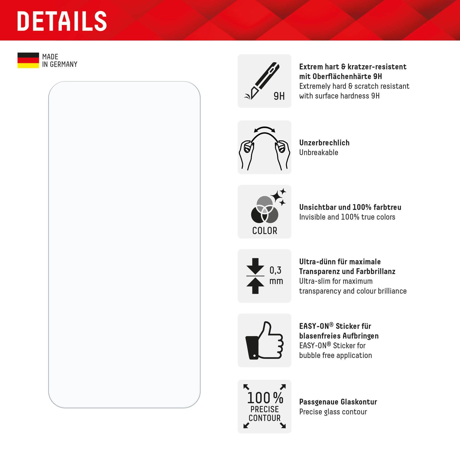 - Kratzer-resistent: Die flexible Schutzfolie mit Glas-Beschichtung (9H) schützt das Display wirkungsvoll vor Kratzern.
