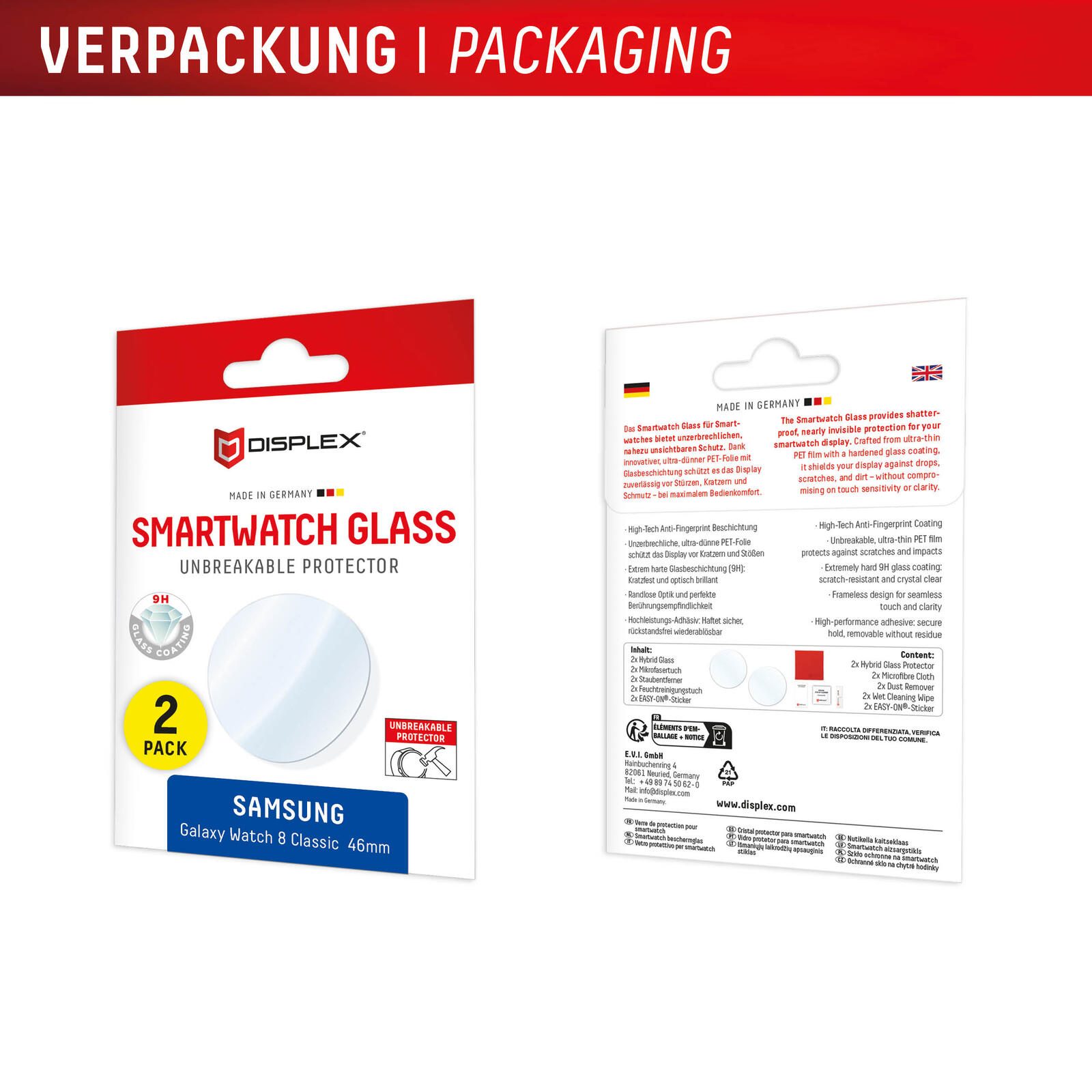 DISPLEX Unzerbrechliches Smartwatch Glass für Samsung Galaxy Watch 8 Classic (46mm) 2 Stück, Extra hart (9H), Ultra-Dünn, Randlos, Anti-Fingerprint, Schutzfolie, Made in Germany