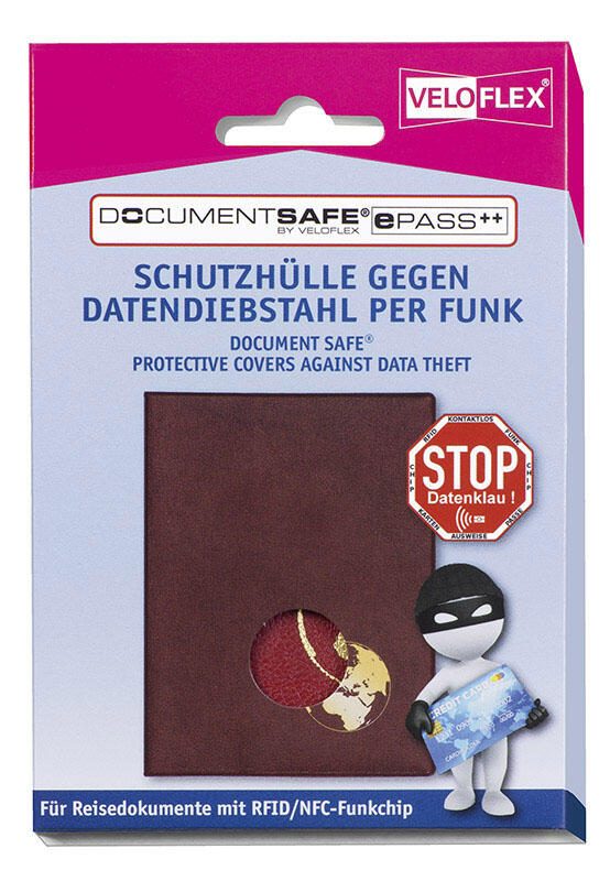 Die VELOFLEX Dokumentenhülle in elegantem weinrot ist die ideale Lösung für die sichere Aufbewahrung deiner wichtigen Dokumente. Mit einer Größe von 10,0 x 13,5 cm bietet sie ausreichend Platz für deinen ePass, der mit einem RFID- oder NFC-Funkchip ausgestattet ist, sowie für deinen Reisepass. Diese Hülle ist nicht nur funktional, sondern auch stilvoll und schützt deine Dokumente vor äußeren Einflüssen. Die seitliche Öffnung ermöglicht ein einfaches Einlegen und Entnehmen deiner Papiere, was dir im Alltag eine große Erleichterung bietet. Die zusätzliche Innentasche sorgt dafür, dass du wichtige Unterlagen oder Karten sicher und ordentlich verstauen kannst. Das hochwertige Material aus PVC und Spezialfolie gewährleistet eine langanhaltende Nutzung und schützt deine Dokumente vor Feuchtigkeit und Abnutzung. Die VELOFLEX Dokumentenhülle ist nicht nur für Reisepass und ePass geeignet, sondern auch für andere wichtige Dokumente, die du stets griffbereit haben möchtest. Ihr ansprechender Farbton in weinrot verleiht der Hülle eine edle Note und macht sie zu einem attraktiven Accessoire, das du gerne mit dir führst. Mit der VELOFLEX Dokumentenhülle entscheidest du dich für Qualität und Sicherheit. Sie ist der perfekte Begleiter für Reisen und den Alltag, um deine Dokumente stilvoll und sicher zu transportieren.Technische Daten