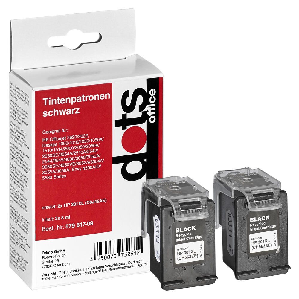 dots Druckerpatronen kompatibel zu HP 301XL (D8J45AE), 2er-Set schwarz