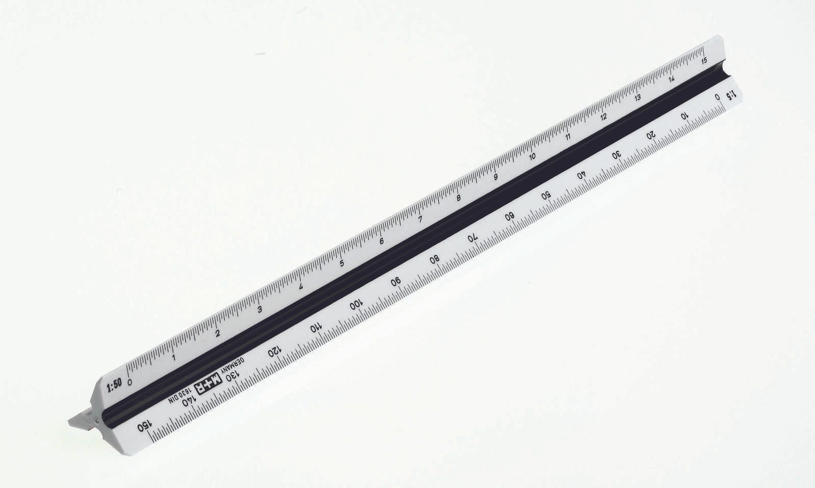Das M + R Dreikantlineal mit einer Länge von 30 cm ist der ideale Begleiter für alle, die präzises Arbeiten schätzen. Gefertigt aus hochwertigem Kunststoff, bietet dieses Lineal eine langlebige und robuste Lösung für deine Zeichen- und Messbedürfnisse. Mit einem eleganten weißen Farbton fügt es sich harmonisch in jede Arbeitsumgebung ein und sorgt gleichzeitig für eine klare Sicht auf deine Zeichnungen. Ein herausragendes Merkmal dieses Dreikantlineals sind die drei farbigen Hohlkehlen, die dir helfen, verschiedene Maßstäbe leicht und schnell zu erkennen. Die Maßstäbe von 1:2,5 über 1:5 bis hin zu 1:100 ermöglichen dir ein präzises Arbeiten in unterschiedlichen Maßstabseinstellungen. So kannst du sicherstellen, dass deine Zeichnungen und Pläne stets den richtigen Maßstab haben und du keine wertvolle Zeit mit dem Suchen nach dem richtigen Maßstab verbringen musst. Das M + R Dreikantlineal ist speziell für Rechtshänder konzipiert, was eine optimale Handhabung garantiert. Es ist ideal für Studenten, Architekten, Designer oder jeden, der regelmäßig mit technischen Zeichnungen arbeitet. Das Fehlen eines Griffs sorgt dafür, dass du das Lineal flexibel und ohne Einschränkungen nutzen kannst. Mit seiner praktischen Länge von 30 cm ist dieses Lineal sowohl für kleine als auch für größere Projekte geeignet. Es ist ein unverzichtbares Werkzeug für jeden, der Wert auf Genauigkeit und Qualität legt. Das M + R Dreikantlineal vereint Funktionalität mit ansprechendem Design und ist somit die perfekte Wahl für deine kreativen und technischen Anforderungen.Technische Daten