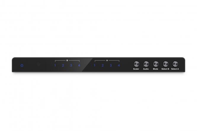 - Wechseln zwischen bis zu 4 HDMI-Quellen und 2 Wiedergabegeräten per Fernbedienung, am Gerät selbst oder via RS232-Steuerung