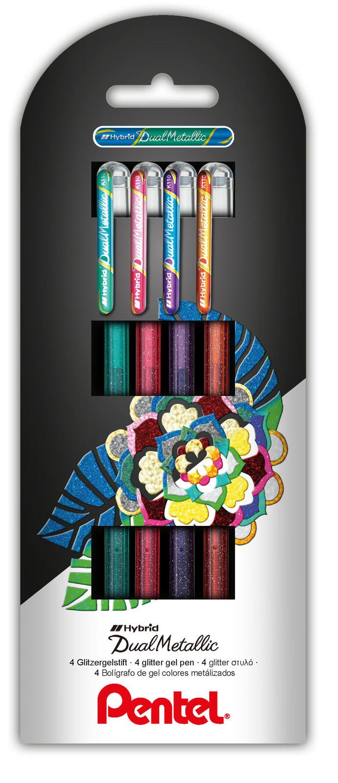 Der Pentel Dual Glitzer Gelschreiber ist ein kreatives Schreibwerkzeug, das mit seiner 0.5 mm Metall-Kugelspitze für präzise und glatte Schreibbewegungen sorgt. Die farbsortierten Schreibfarben umfassen eine faszinierende Palette, die blau/metallic-grün, orange/metallic-gelb, pink/metallic-pink und violett/metallic-blau umfasst. Damit kannst du deine Notizen, Kunstwerke oder Karten mit einem funkelnden Glitzereffekt aufpeppen. Die Eigenschaften des Gelschreibers machen ihn besonders attraktiv. Er ist mit einem praktischen Clip ausgestattet, wodurch er leicht an Notizblöcken oder Taschen befestigt werden kann. Zudem trocknet die Tinte schnell, sodass du dir keine Sorgen um Verwischungen machen musst. Die wischfesten und wasserfesten Eigenschaften garantieren, dass deine Schriftzüge auch bei intensiver Nutzung und verschiedenen Bedingungen erhalten bleiben. Die Schutzkappe sorgt dafür, dass die Spitze des Schreibgeräts immer geschützt ist und die Tinte nicht austrocknet. Der runde Griff des Gelschreibers bietet dir einen angenehmen und komfortablen Halt, was längeres Schreiben oder Zeichnen erleichtert. Mit einem Pack von vier Stiften hast du die Möglichkeit, verschiedene Farben zu nutzen und deiner Kreativität freien Lauf zu lassen. Der Pentel Dual Glitzer Gelschreiber ist somit das ideale Schreibgerät für alle, die gerne kreativ sind und Wert auf Qualität legen. Egal, ob für Schule, Büro oder in der Freizeit – dieser Gelschreiber ist ein vielseitiger Begleiter, der jedem Schriftstück einen besonderen Glanz verleiht.Technische Daten