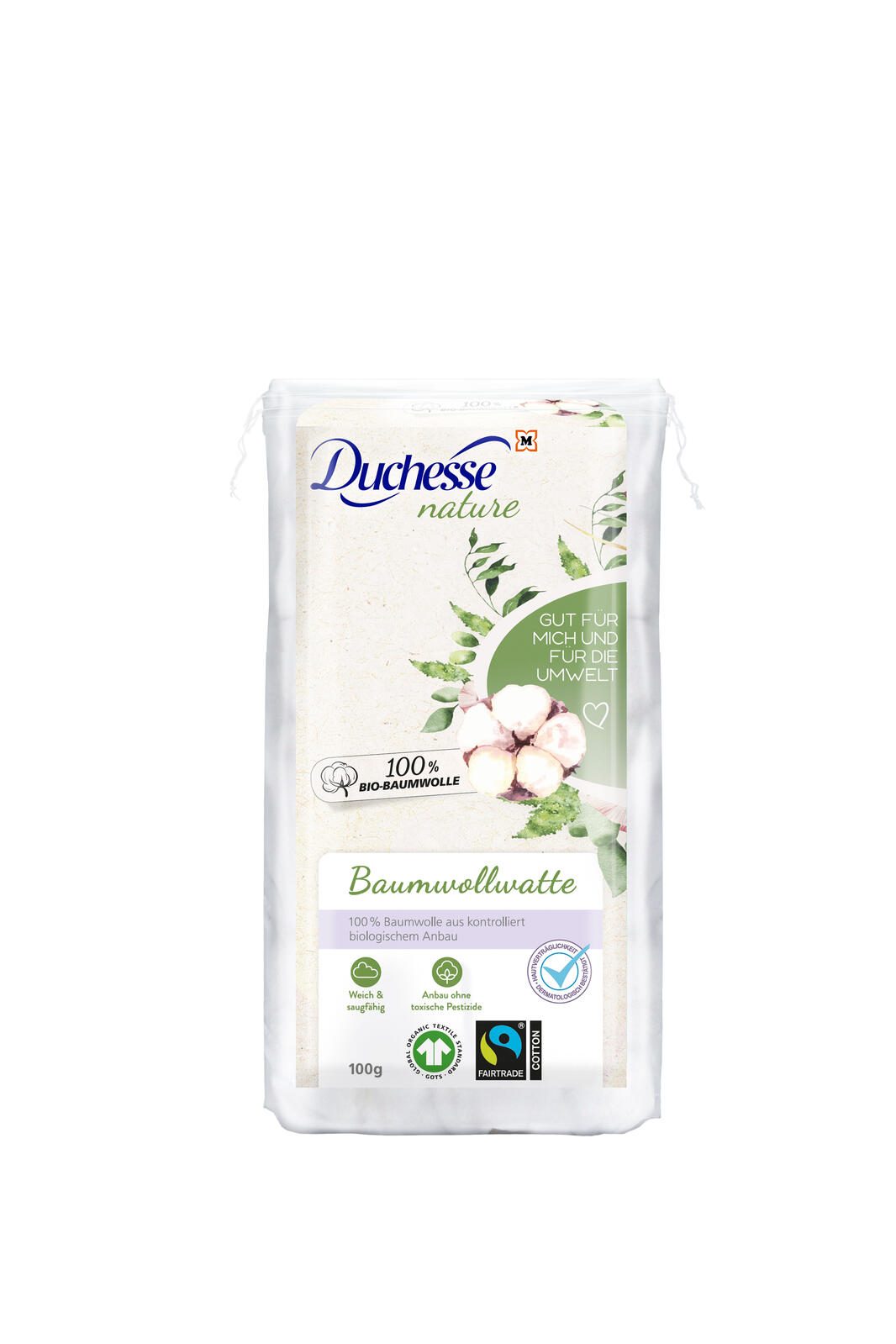 Vertraue auf die Qualität und Nachhaltigkeit der Duchesse Watte für ein angenehmes Pflegeerlebnis, das deine Haut verwöhnt und pflegt. Entdecke die sanfte Berührung der reinen Baumwolle mit der Duchesse Bio-Watte 100g.