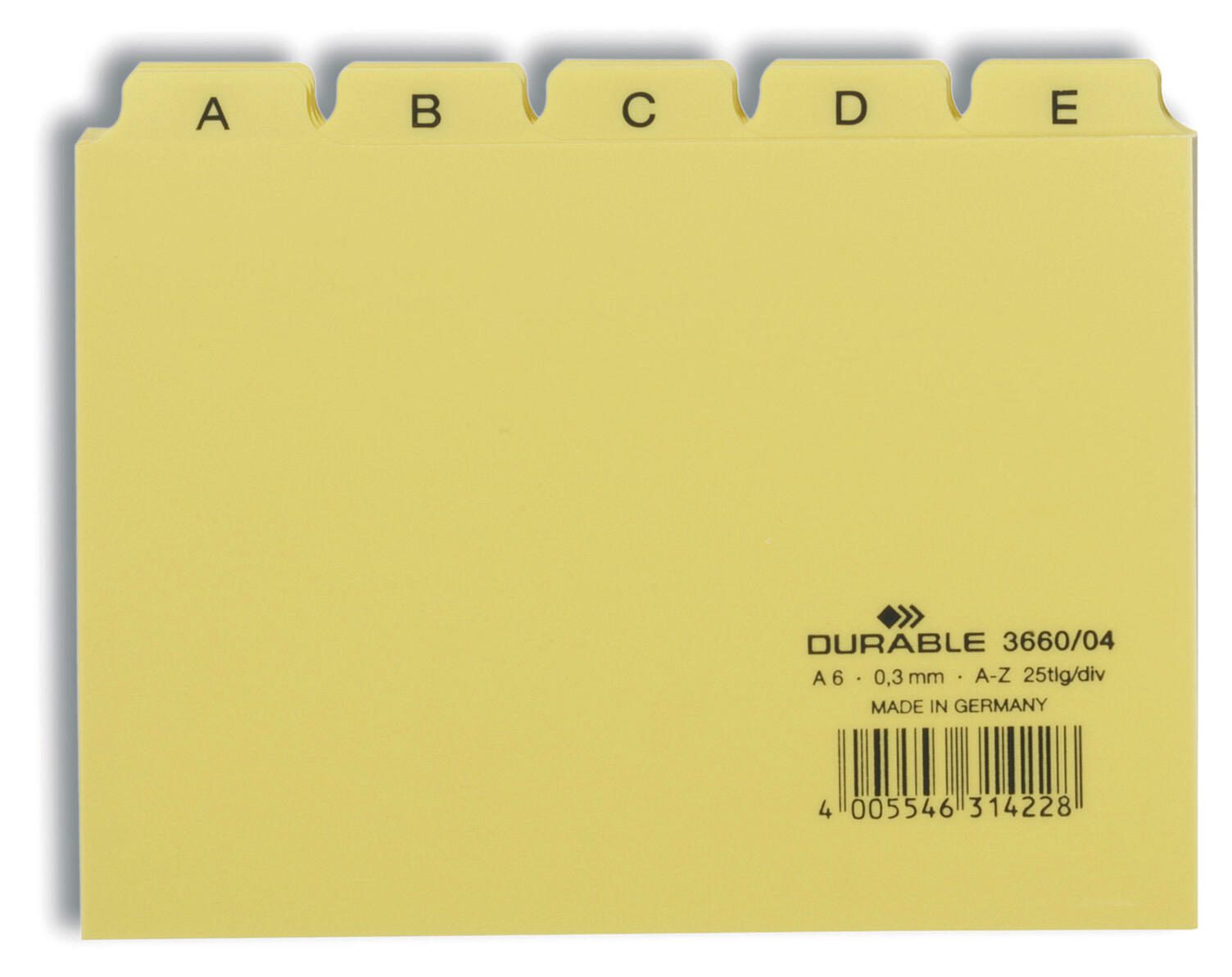 DURABLE Karteikartenregister A-Z gelb für DIN-A6-Karteikasten