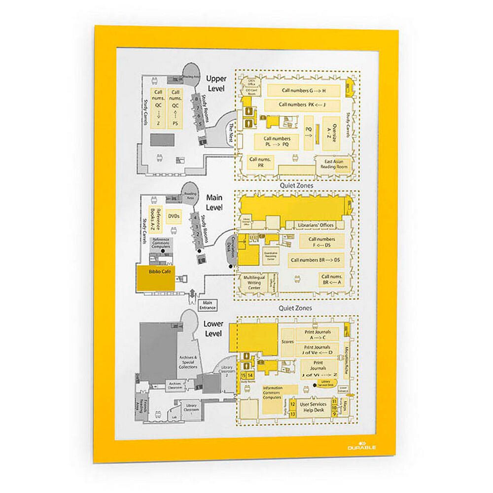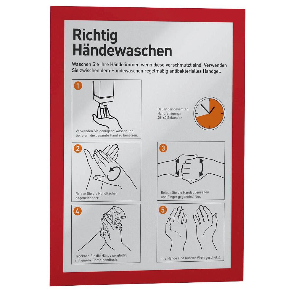 Mit dem DURAFRAME kannst du Informationsblätter spielend leicht einlegen und bei Bedarf wieder austauschen. Dies macht ihn zu einem flexiblen Hilfsmittel, das sich ideal für wechselnde Informationen eignet. Die selbstklebende Rückseite sorgt dafür, dass der Rahmen auf jeder glatten Oberfläche problemlos angebracht werden kann. Egal ob an Wänden, Türen oder Fenstern – die Anbringung ist schnell und unkompliziert.