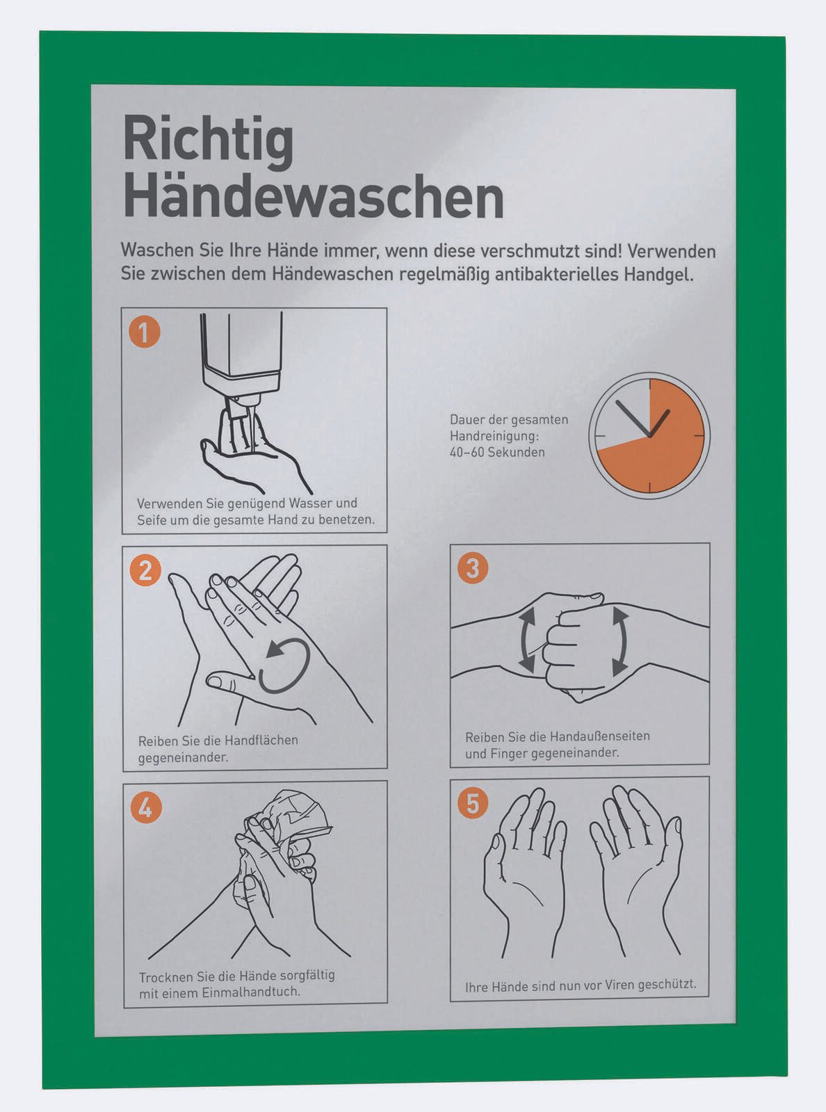 Der DURABLE Magnetrahmen A4 in einem ansprechenden Grün ist die ideale Lösung für die Präsentation von Informationen in Büros, Schulungsräumen oder zu Hause. Mit seiner praktischen Öffnung an der Unterseite und den Seiten ermöglicht dieser Rahmen ein einfaches Einlegen und Wechseln von Dokumenten, was dir eine flexible Nutzung garantiert. Hergestellt aus antireflektierender Hartfolie, schützt der Rahmen deine A4-Dokumente nicht nur vor Staub und Schmutz, sondern sorgt auch dafür, dass sie immer klar und gut lesbar sind. Die grüne Farbe verleiht deinem Raum eine frische Note und hebt deine Informationen hervor, ohne dabei aufdringlich zu wirken. Der DURABLE Magnetrahmen ist speziell für alle eisenhaltigen Flächen geeignet, wie beispielsweise Whiteboards oder Stahlschränke. So kannst du ihn überall dort einsetzen, wo du eine magnetische Oberfläche hast. Ob für die Präsentation von Plänen, Informationen oder Ankündigungen – dieser Magnetrahmen bietet dir die nötige Flexibilität und Funktionalität. In einer Packung erhältst du fünf Stück, sodass du mehrere Bereiche gleichzeitig gestalten und organisieren kannst. Dieser Magnetrahmen ist nicht nur praktisch, sondern auch eine stilvolle Möglichkeit, deine Dokumente zu präsentieren. Mit dem DURABLE Magnetrahmen A4 in Grün bringst du Ordnung und Übersichtlichkeit in deine Präsentationen, während du gleichzeitig auf eine ansprechende Optik setzt.Technische Daten