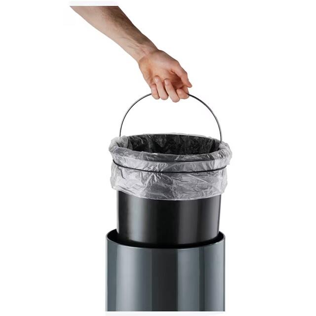 Ein weiteres durchdachtes Detail ist die Beutelfixierung durch einen Gummiring, der sicherstellt, dass der Müllbeutel an Ort und Stelle bleibt und nicht verrutscht. Dies macht die Handhabung noch einfacher und sorgt für eine saubere Entsorgung.