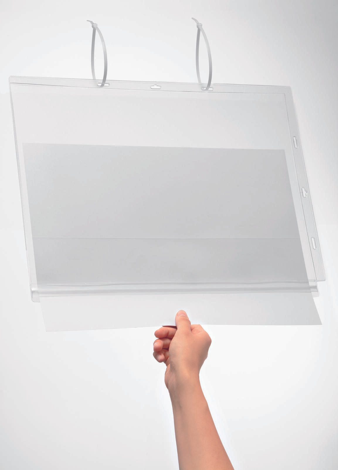 Die DURABLE Dokumentenhüllen A3 mit einer Stärke von 0,6 mm sind die ideale Lösung, um deine Unterlagen sicher und übersichtlich aufzubewahren. Die transparente Farbe ermöglicht es dir, den Inhalt auf den ersten Blick zu erkennen, ohne die Hülle öffnen zu müssen. Dank der seitlichen Öffnung sind deine Dokumente einfach zugänglich, während die Befestigung durch zwei Kabelbinder in dafür vorgesehene Lang- oder Eurolöcher für eine sichere Aufbewahrung sorgt.