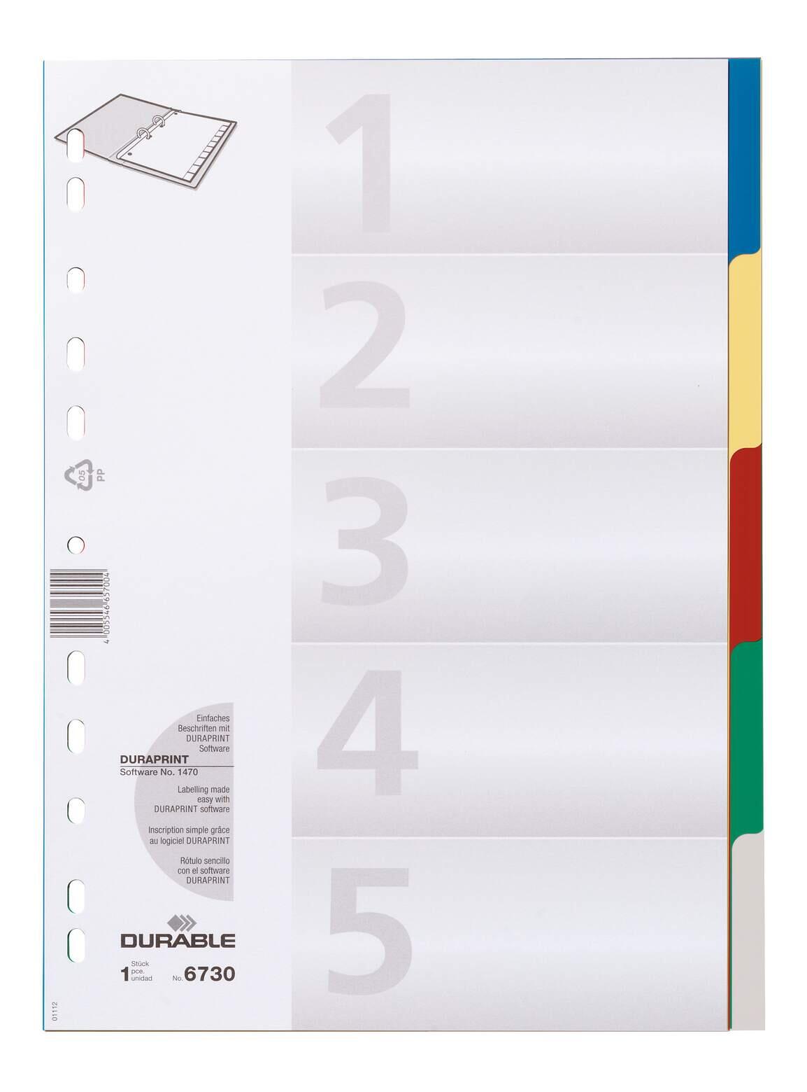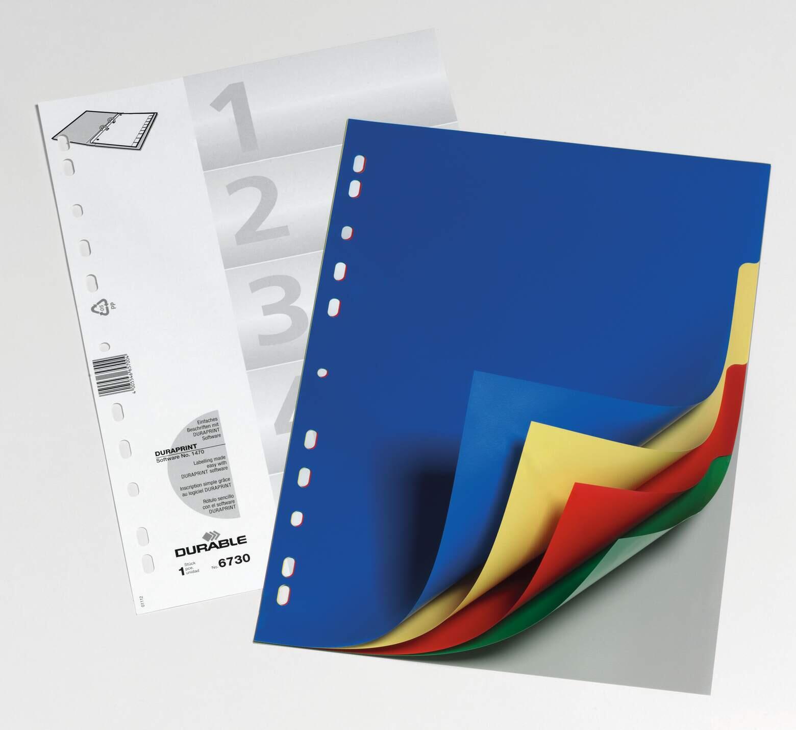 DURABLE Register A4 5-tlg. mit farbigen Taben und Deckblatt PP