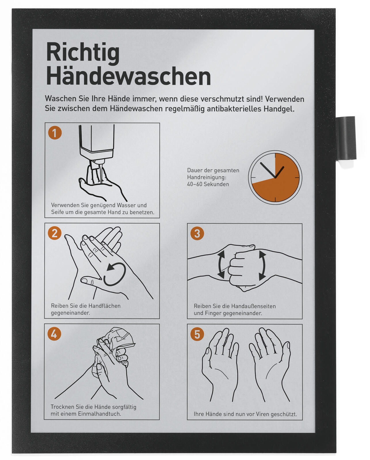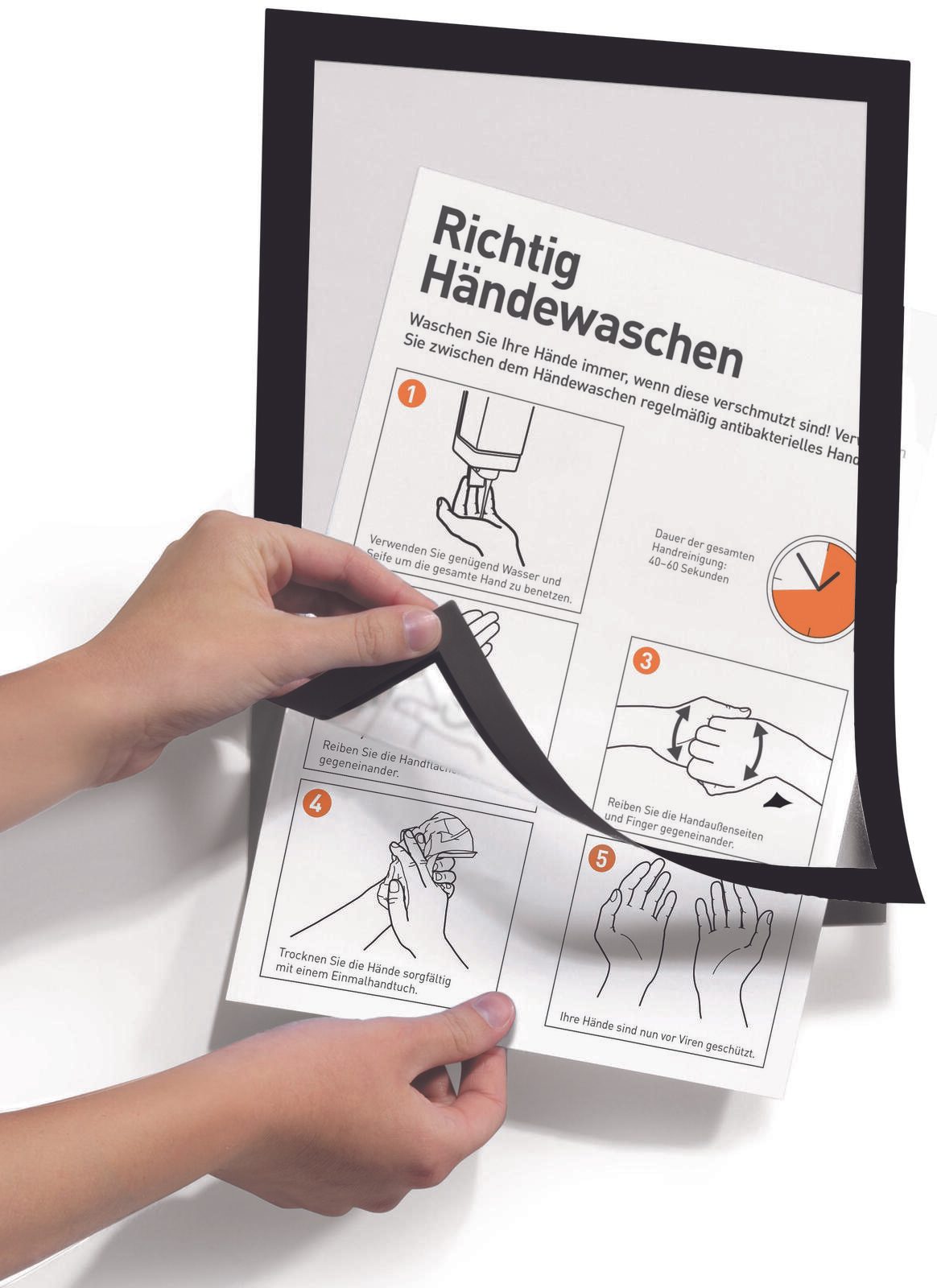 Hergestellt aus hochwertigem PVC ist der Rahmen strapazierfähig und langlebig. Seine Öffnung an der unteren und seitlichen Seite ermöglicht ein müheloses Einlegen und Austauschen von Inhalten, ohne den Rahmen von der Oberfläche entfernen zu müssen.