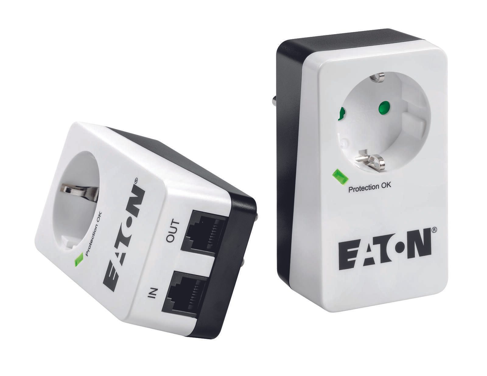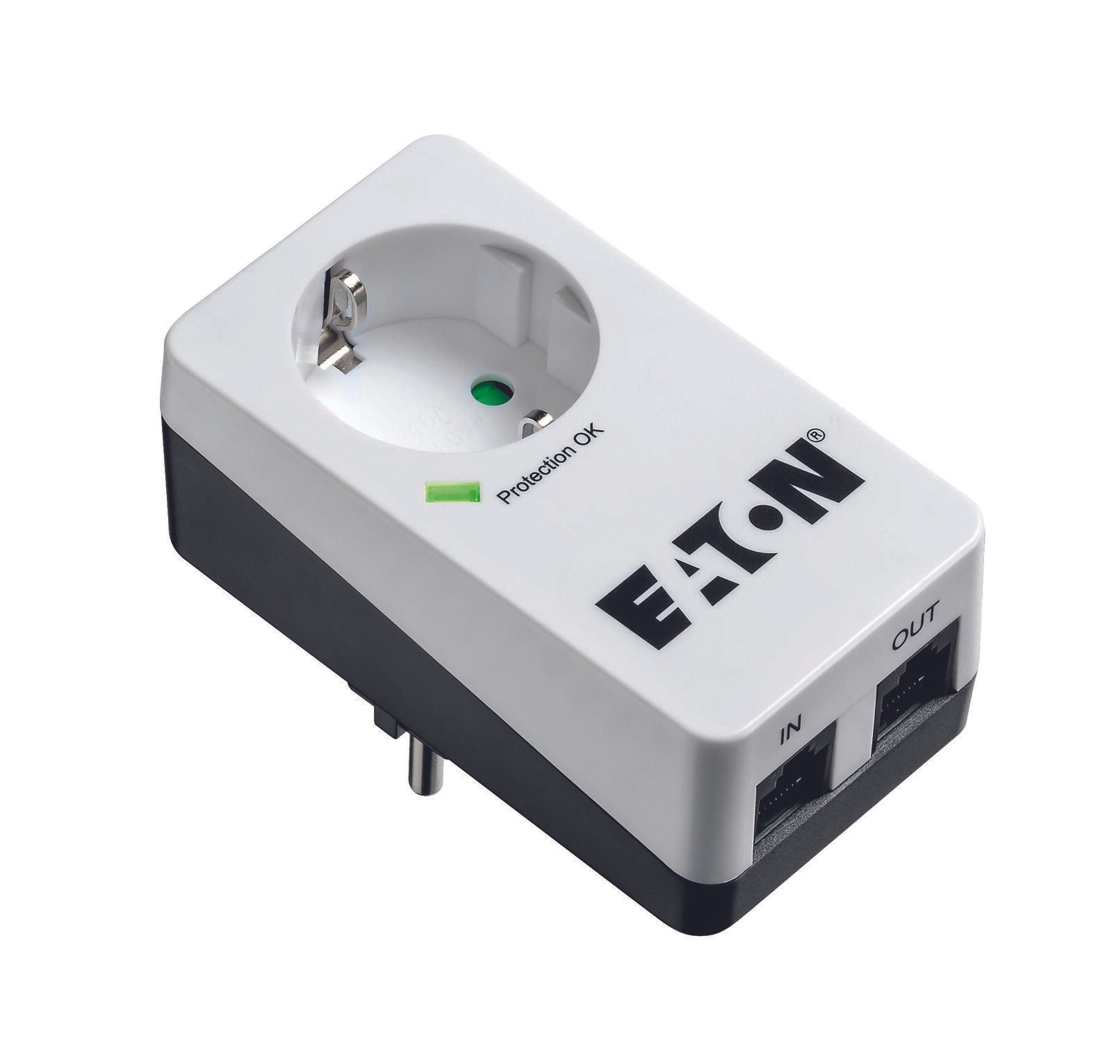 Eaton Steckdosen Schalter mit Telefonstecker und Überspannungsschutz weiß (PB1TD)