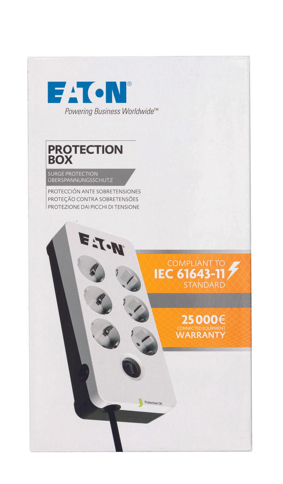 Eaton Steckdosenleiste 6-fach mit Überspannungsschutz und Schalter 1.5m weiß Blitz- und Überspannungsschutz PB6D