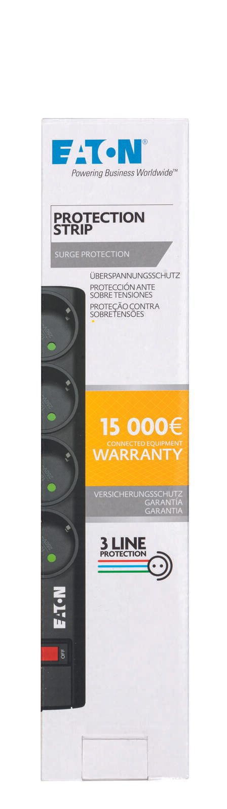 Eaton Steckdosenleiste 4-fach mit Überspannungsschutz und Schalter 1m schwarz (PS4D)