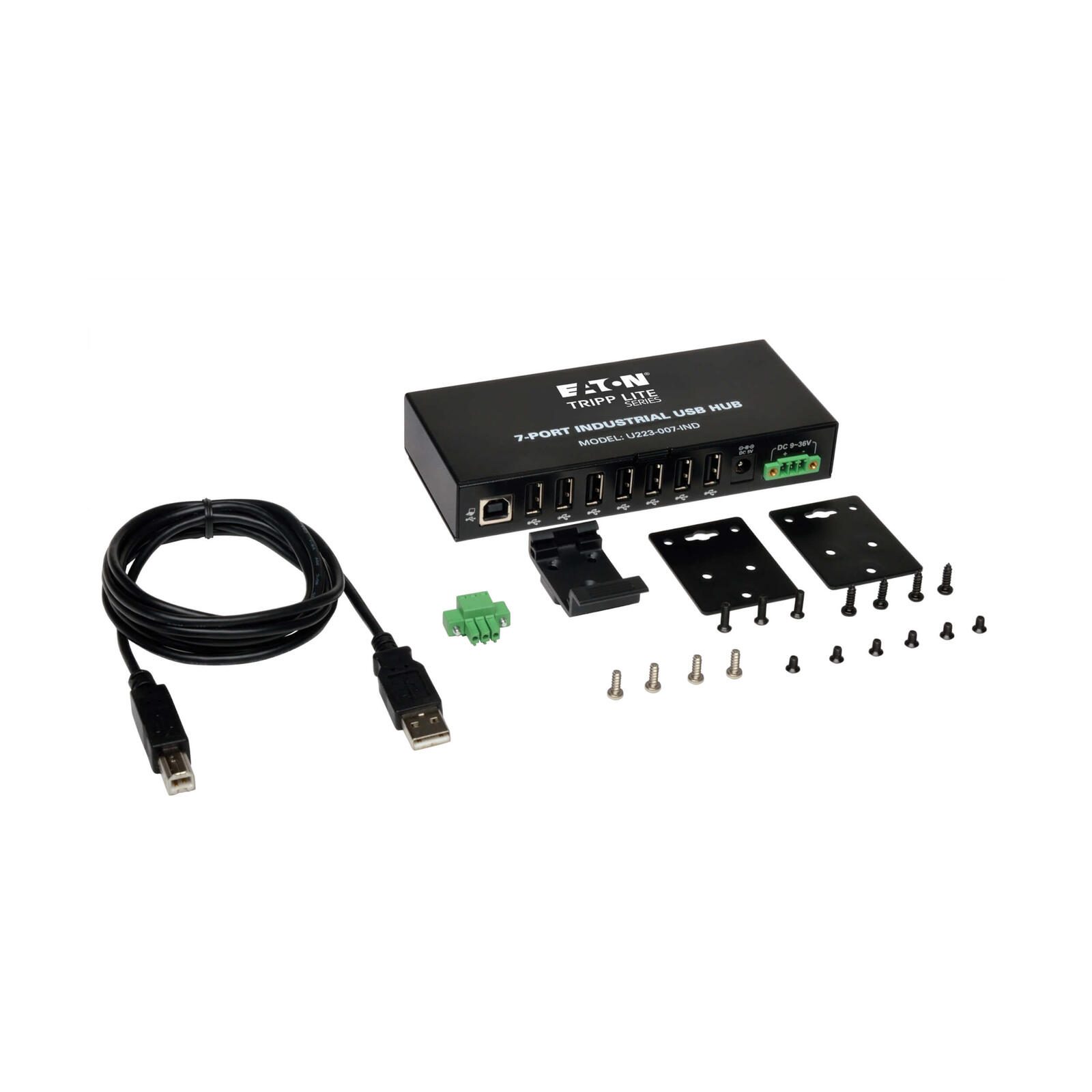 Eaton Tripp Lite Series 7-Port Industrial-Grade USB 2.0 Hub - 15 kV ESD Immunity, Metal Housing, Mountable