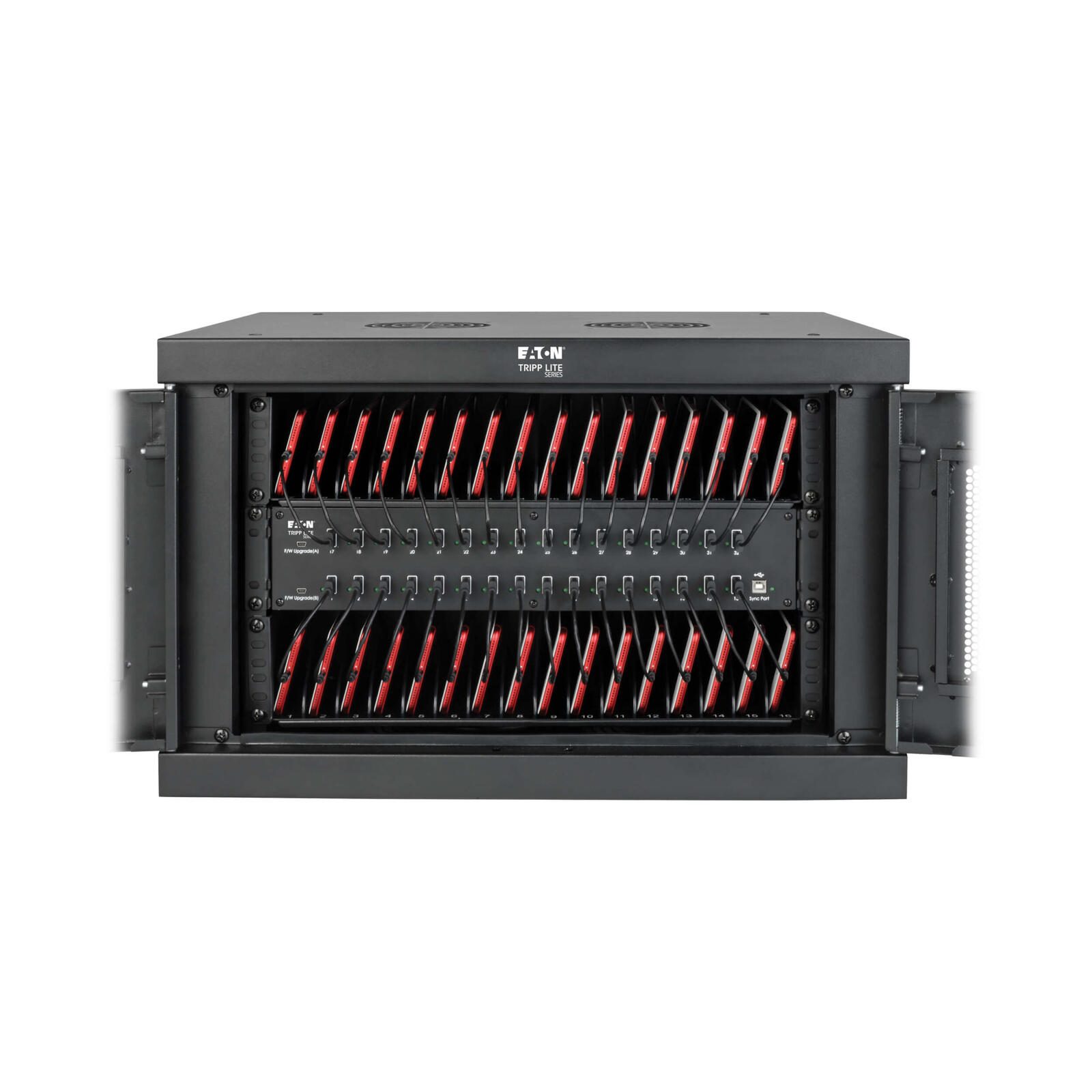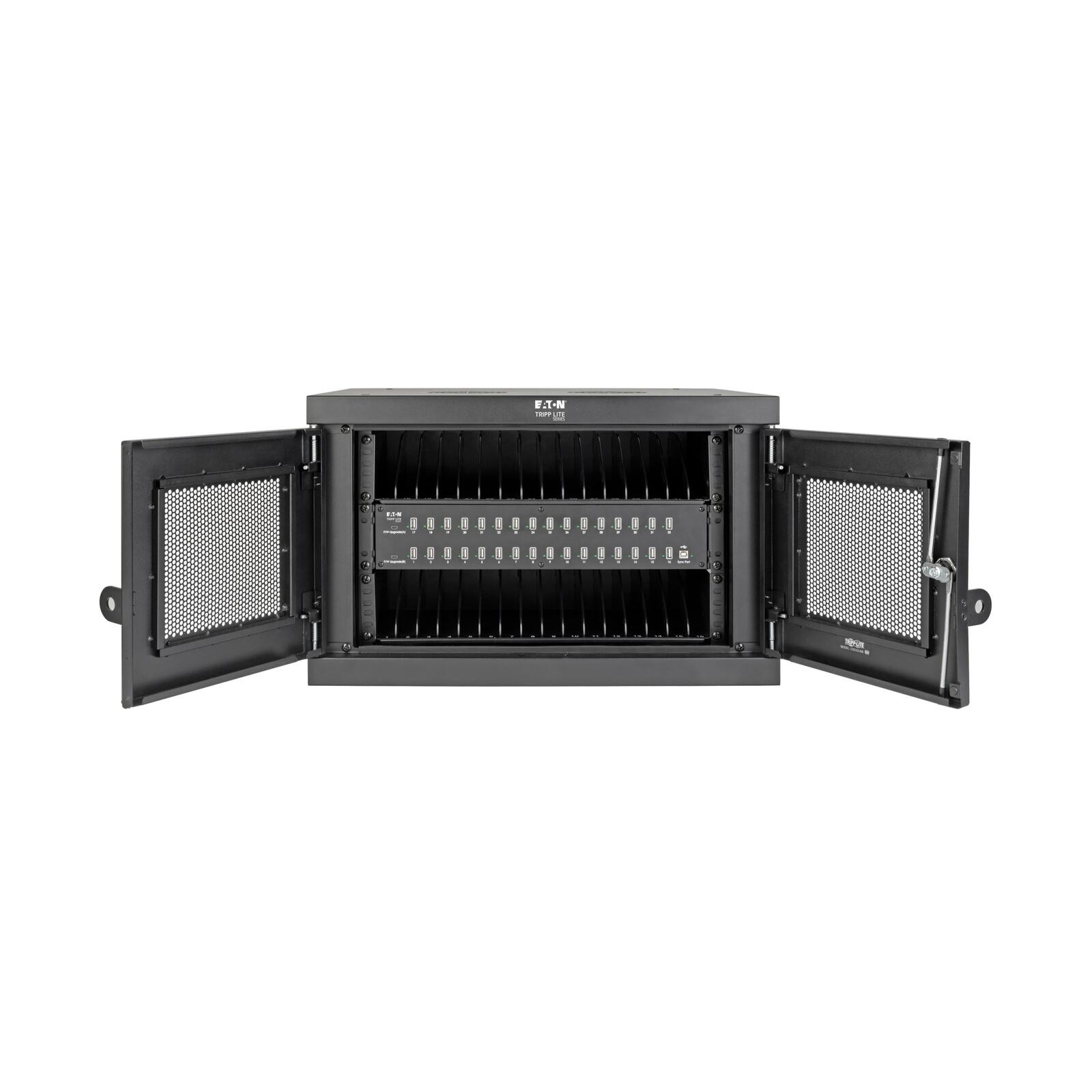 Eaton Tripp Lite Series 32-Device USB Charging Station Cabinet with Sync for Smartphones, Wall Mount and Desktop Options, 230V, Schuko CEE7 to C13 Plug, Black - Multigeräte-Ladegerät