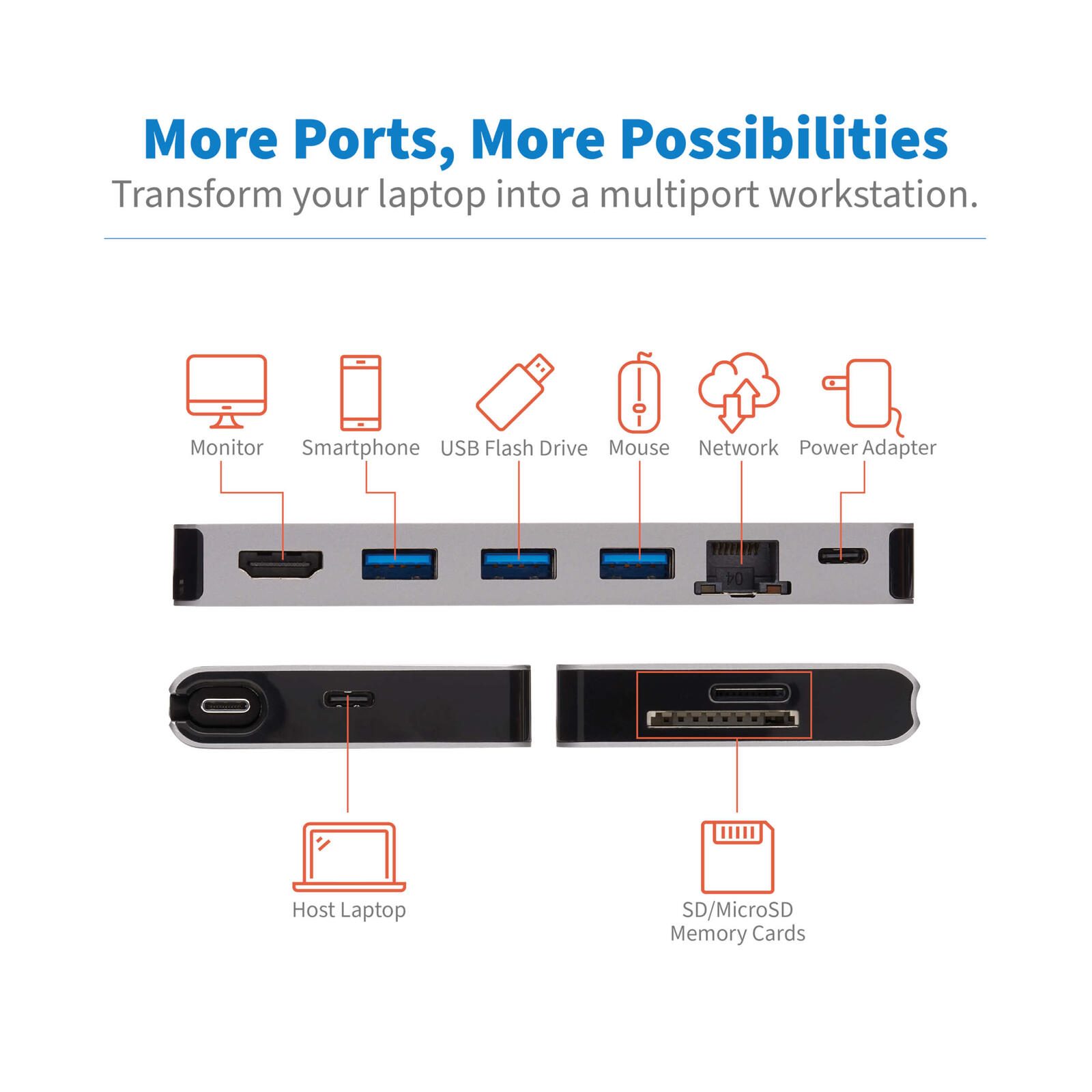 Eaton Tripp Lite Series USB-C Dock - 4K HDMI, USB 3.2 Gen 1, USB-A Hub, GbE, Memory Card, 100W PD Charging, Detachable Cord