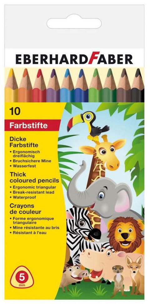 Die EBERHARD FABER Buntstifte in mehrfarbiger Ausführung sind die perfekte Wahl für kreative Köpfe, die Wert auf Qualität und Vielfalt legen. Mit einem Set von 10 Stiften in lebendigen Farben wie Schwarz, Braun, Blau, Hellblau, Grün, Hellgrün, Gelb, Rot, Lila und Orange, kannst du deiner Fantasie freien Lauf lassen und beeindruckende Kunstwerke erschaffen. Die Dreikantform der Stifte sorgt nicht nur für einen ergonomischen Halt, sondern ermöglicht auch ein präzises Zeichnen und Malen, was besonders für Kinder und Künstler von Vorteil ist. Ein herausragendes Merkmal dieser Buntstifte ist die hohe Minenstabilität und Bruchfestigkeit, die dafür sorgt, dass du lange Freude an deinen Stiften hast. Egal, ob du sie für das Zeichnen, Ausmalen oder kreative Bastelprojekte verwendest, die Stabilität der Minen gewährleistet eine gleichmäßige Farbabgabe und verhindert unangenehme Brüche. Die Jumbo-Ausführung der Stifte bietet zudem eine angenehme Handhabung und ist ideal für kleine Hände, die noch lernen, ihre motorischen Fähigkeiten zu entwickeln. Die Buntstifte sind in einem praktischen Karton-Etui verpackt, das sich leicht transportieren lässt und dafür sorgt, dass deine Stifte immer ordentlich und griffbereit sind. Mit EBERHARD FABER Buntstiften in Mehrfarbig erhältst du nicht nur ein hochwertiges Produkt, sondern auch eine Einladung zur kreativen Entfaltung. Lass deiner Kreativität freien Lauf und entdecke die Freude am Zeichnen und Malen mit diesen vielseitigen Buntstiften.Technische Daten