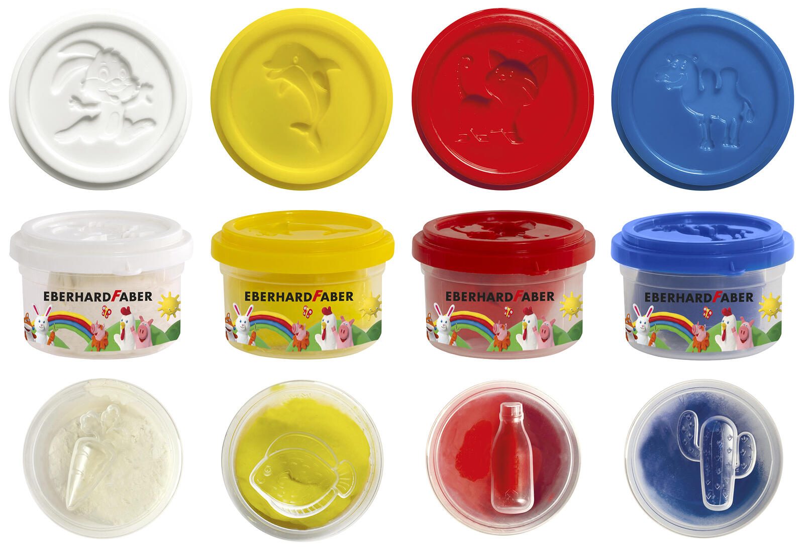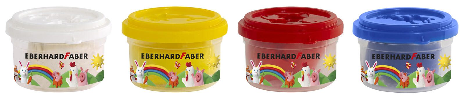 Die EBERHARD FABER Spielknete Basisfarben bietet eine hochwertige Auswahl an vier klassischen Farben: Weiß, Gelb, Rot und Blau. Jede Packung enthält vier Döschen mit jeweils 50 g Knete, die speziell für kleine Hände entwickelt wurde und somit ideal für Kinder jeden Alters ist. Die Knete lässt sich leicht formen und kneten, was die Kreativität und Feinmotorik der Kinder fördert.