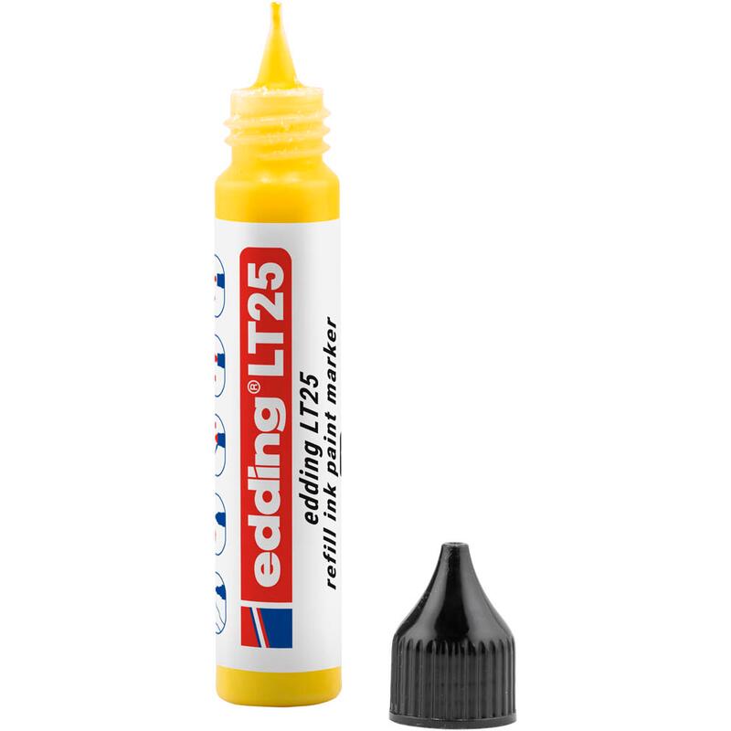 Die edding Nachfülltinte LT 25 in der Farbe Gelb ist speziell für die Wiederbefüllung von edding Eco Line Lackmarkern der Serien 50, 51 und 52 konzipiert. Diese Tinte ermöglicht eine einfache und saubere Nachfüllung, wodurch die Marker länger verwendet werden können und somit Ressourcen geschont werden.