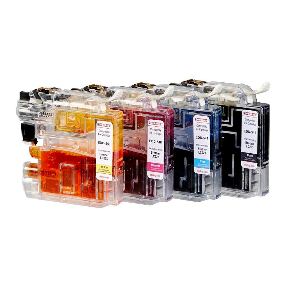 edding Druckerpatronen EDD-550 schwarz, cyan, magenta, gelb kompatibel zu brother LC-223BK/C/M/Y, 4er-Set 1 Pack = 4 St.