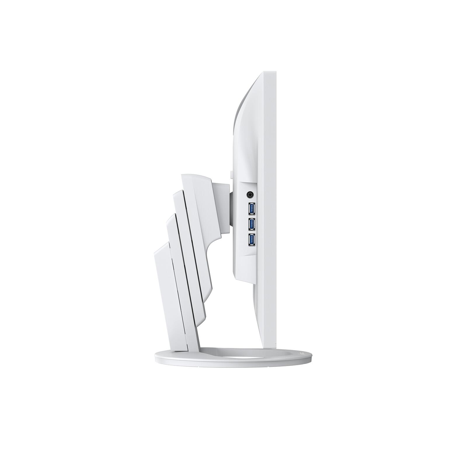 Das Aussehen eines Monitors trägt wesentlich dazu bei, eine angenehme Arbeitsatmosphäre zu schaffen. Durch sein feines, praktisch rahmenloses Design und seine ergonomischen Funktionen fügt sich der Monitor ganz natürlich in Ihre Arbeitsumgebung ein, egal ob Sie zu Hause oder im Büro sind. Neben elegantem Schwarz ist das Gehäuse auch in Weiß, mit farblich genau passenden weißen Kabeln, erhältlich.