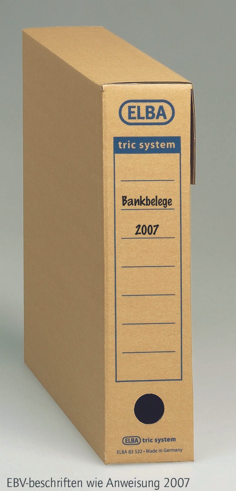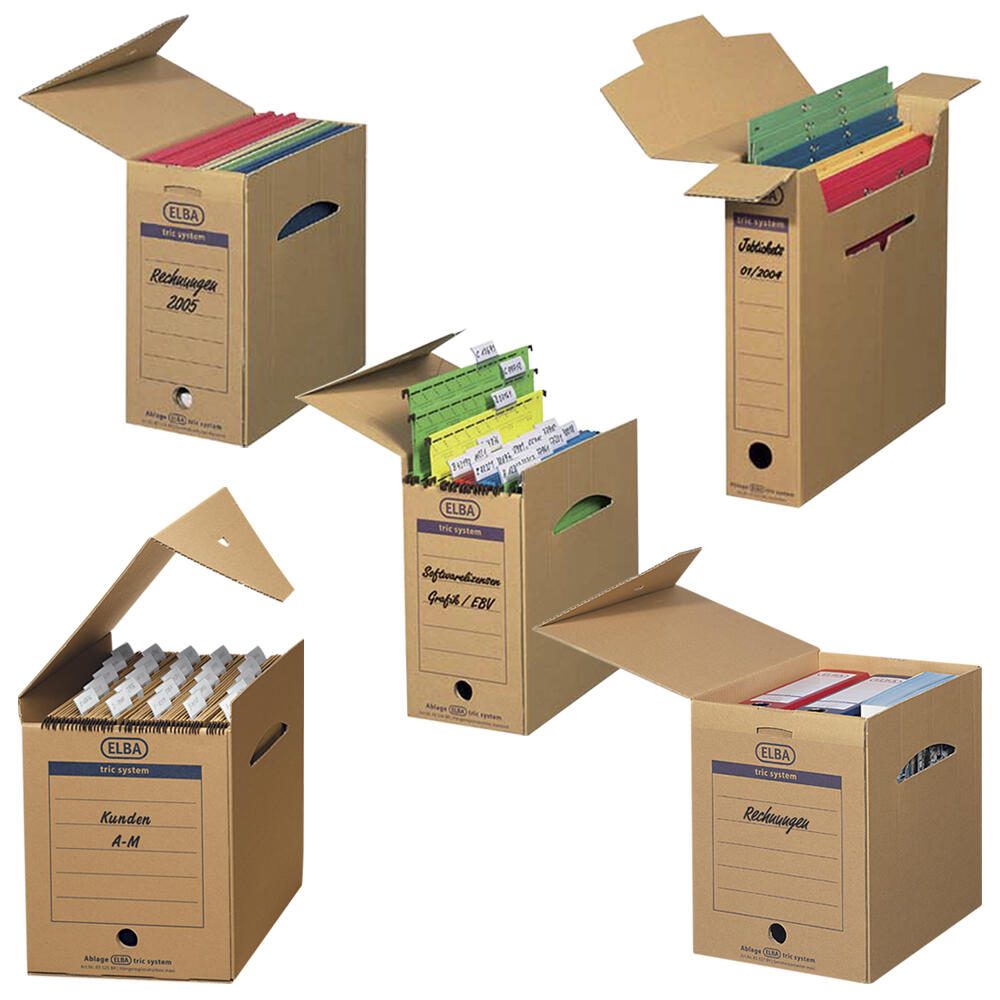 Die ELBA Archivboxen für lose Dokumente bieten eine praktische und stilvolle Lösung zur Aufbewahrung und Organisation deiner Unterlagen. Mit einem großzügigen Fassungsvermögen von 8,1 Litern und Außenmaßen von 8,0 x 34,1 x 31,5 cm sind diese Boxen ideal für die sichere Aufbewahrung von Dokumenten im DIN A4 Format. Das hochwertige Material aus Karton sorgt für Stabilität und Langlebigkeit, während die braune Farbe einen eleganten und klassischen Look verleiht, der sich harmonisch in jedes Büro oder Zuhause einfügt. Die ELBA Archivboxen sind nicht nur funktional, sondern auch durchdacht gestaltet. Sie verfügen über ein praktisches Griffloch, das dir das Herausnehmen und Transportieren der Boxen erleichtert. Ob für wichtige Verträge, Rechnungen oder andere lose Dokumente – mit diesen Archivboxen behältst du stets den Überblick und sorgst dafür, dass deine Unterlagen ordentlich und geschützt aufbewahrt werden. Ein Pack enthält 12 Stück, was dir die Möglichkeit gibt, mehrere Bereiche gleichzeitig zu organisieren oder eine einheitliche Aufbewahrungslösung für dein gesamtes Büro zu schaffen. Die Serie tric system von ELBA steht für durchdachte Lösungen, die den Anforderungen des modernen Alltags gerecht werden. Mit den ELBA Archivboxen für lose Dokumente triffst du die richtige Wahl, um deine Dokumente sicher und stilvoll zu archivieren. Sie sind die perfekte Kombination aus Funktionalität und ansprechendem Design, die dir hilft, Ordnung zu halten und deine Unterlagen jederzeit griffbereit zu haben.Technische Daten