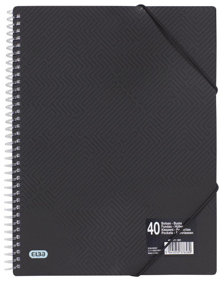 Das ELBA Sichtbuch Elba URBAN Spiral-Sichtbuch in Schwarz ist ideal für DIN A4 Formate. Mit seiner Spiralbindung aus Polypropylen (PP) bietet es eine stabile und langlebige Lösung, um bis zu 40 Hüllen sicher zu verstauen. Der schmale Rücken von nur 1,5 cm sorgt für eine platzsparende Aufbewahrung.