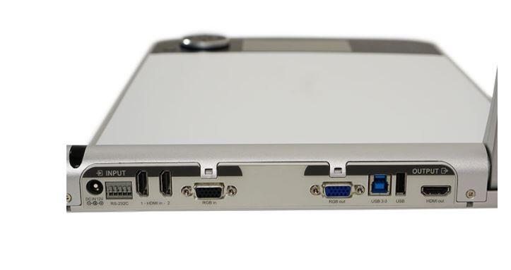 2 x HDMI-Eingang VGA-Eingang - HD-15 HDMI-Ausgang VGA-Ausgang - HD-15 USB 3.0 - 9 pin USB Type B USB (nur Stromversorgung) - USB-Typ A, 4-polig Serieller RS-232-Eingang Audioeingang/Mikrofon - 3,5-mm-Monostecker Audioausgang - 3,5-mm-Stereoanschluss USB 2.0 - USB-Typ A, 4-polig