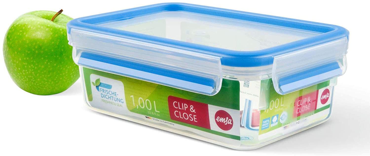 Die emsa Frischhaltedose mit einem Fassungsvermögen von 1,0 l ist Teil der CLIP & CLOSE Serie und besteht aus transparentem und blauem Polypropylen (PP). Mit dieser hochwertigen Frischhaltedose von emsa kannst du deine Lebensmittel optimal aufbewahren und frisch halten.