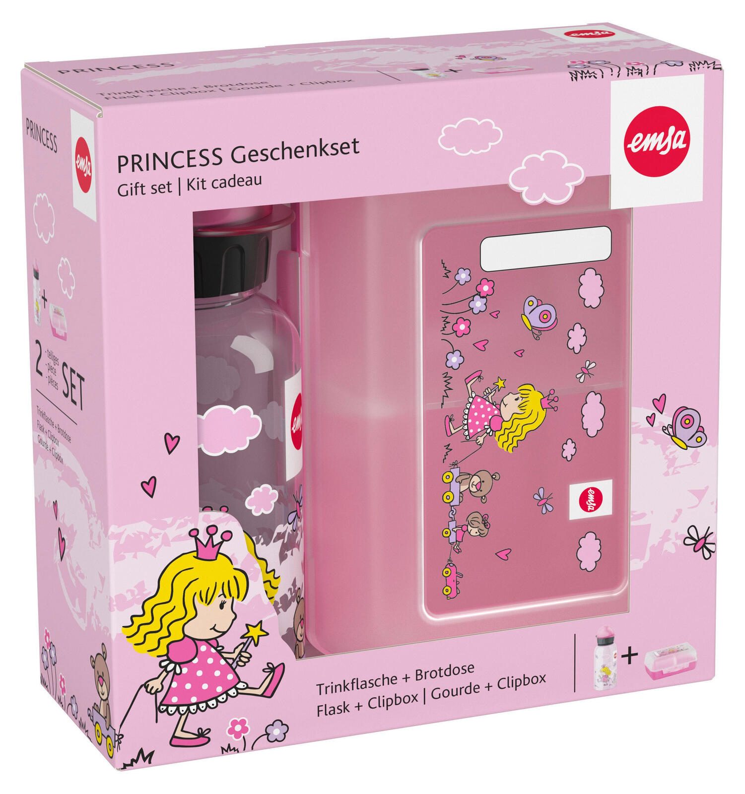 Das Kinder-Set Trinkflasche und Brotdose ist die perfekte Begleitung für kleine Prinzessinnen. Hergestellt aus transparentem rosa Polypropylen (PP) von Emsa, bietet dieses Set ein Fassungsvermögen von 0,4 Litern für die Trinkflasche und Abmessungen von 7,0 x 18,0 cm für die Brotdose.