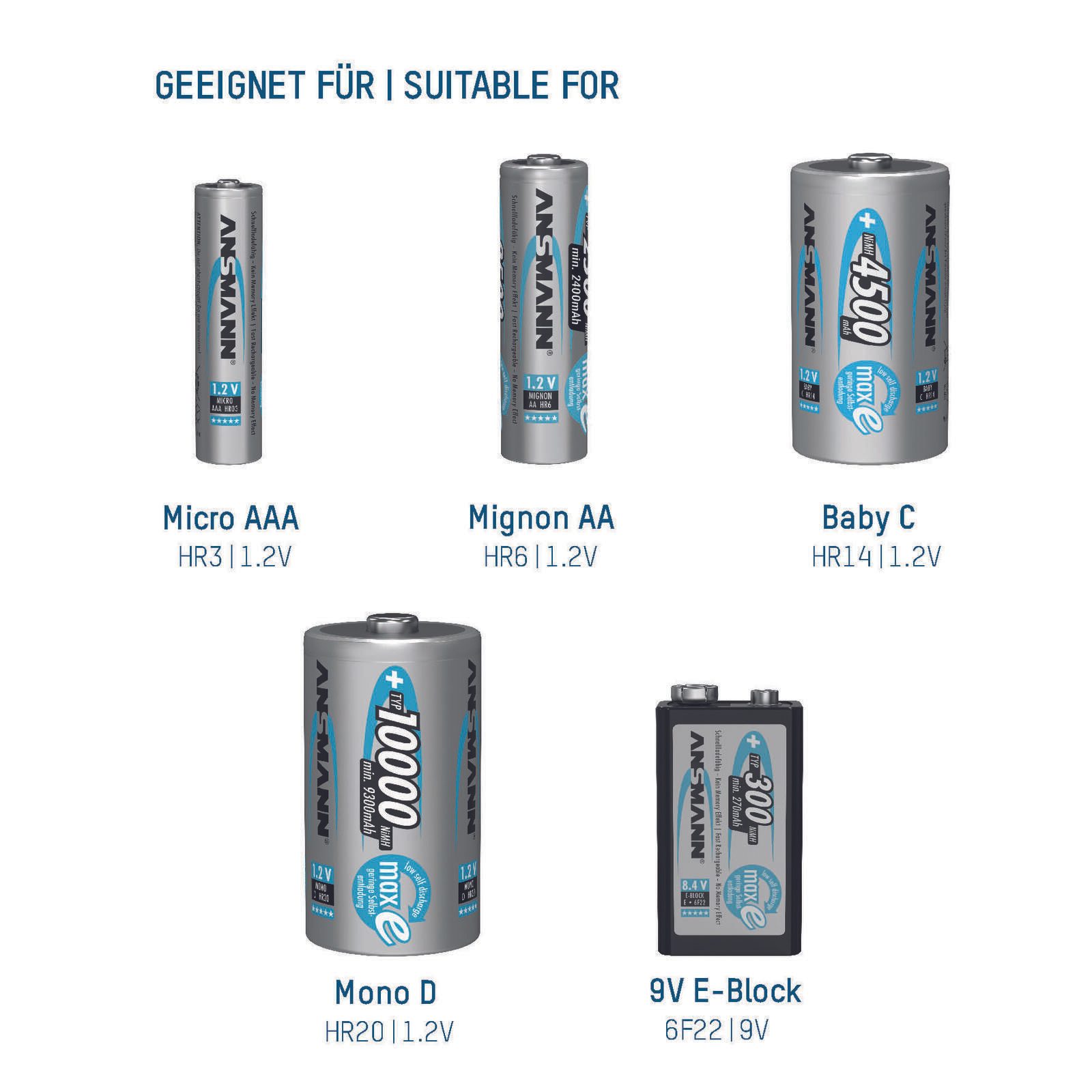 - geeignet für: 1 - 12 Mignon-/Micro-, 1 - 6 Baby-/Mono- sowie 1 - 2 9V Block-Akkus (Ni-MH/Ni-Cd)