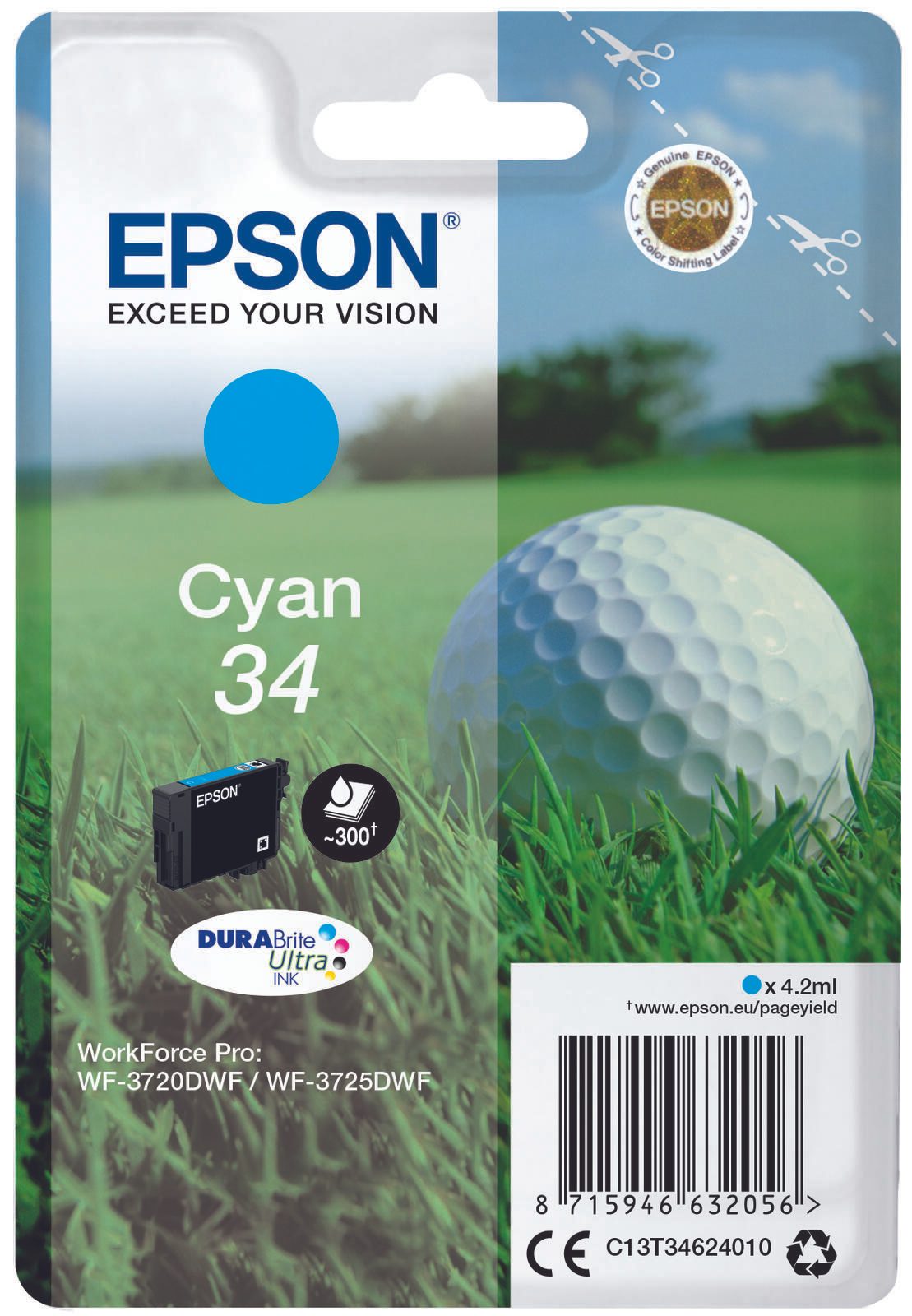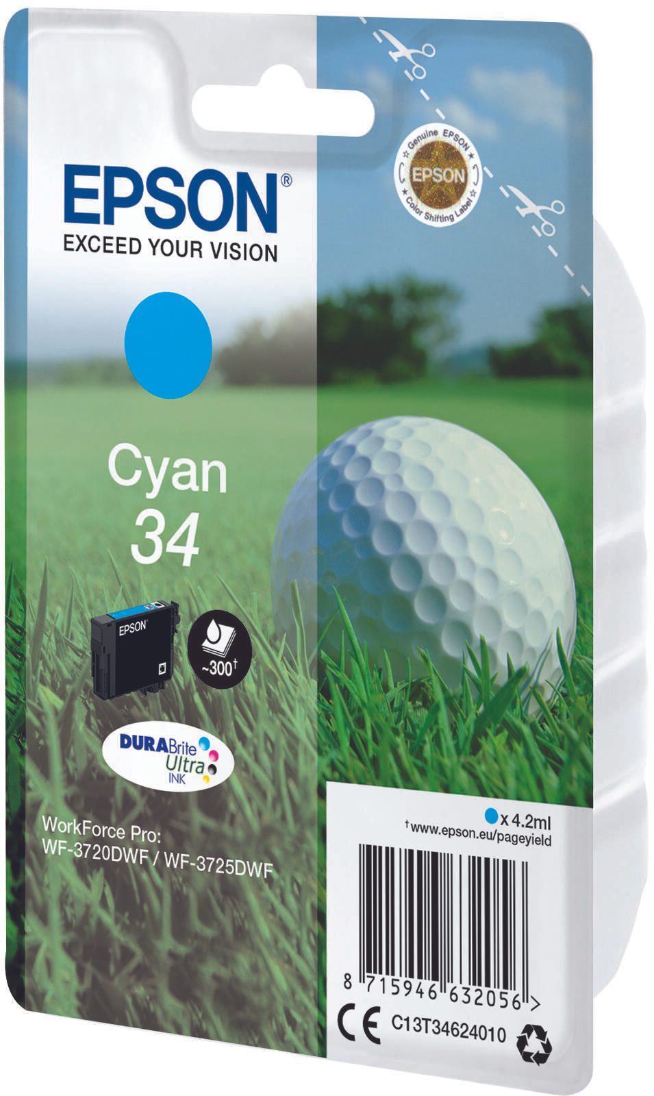 Epson Original 34 Golfball Druckerpatrone cyan 300 Seiten 4,2ml (C13T34624010)