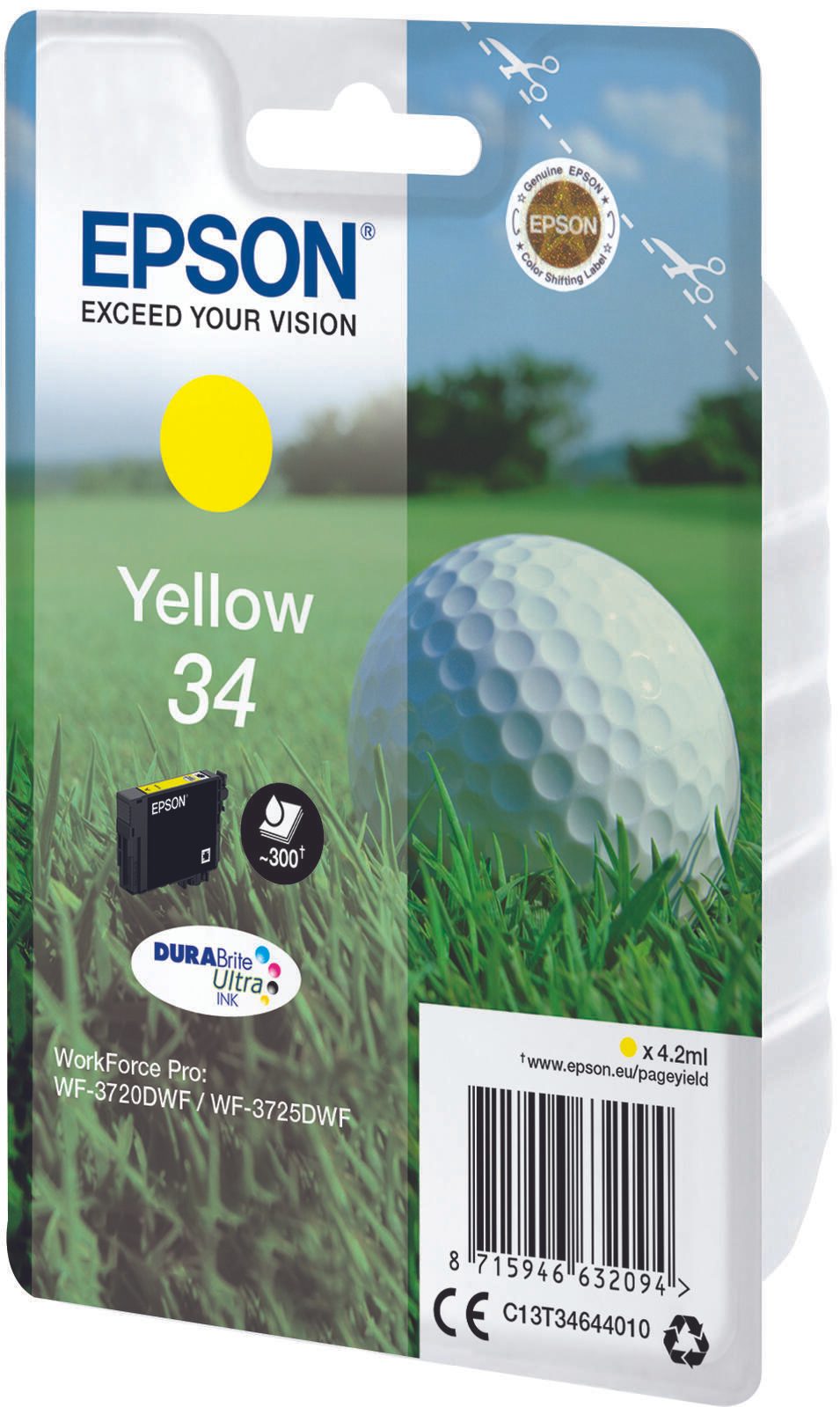 Epson Original 34 Golfball Druckerpatrone gelb 300 Seiten 4,2ml (C13T34644010)