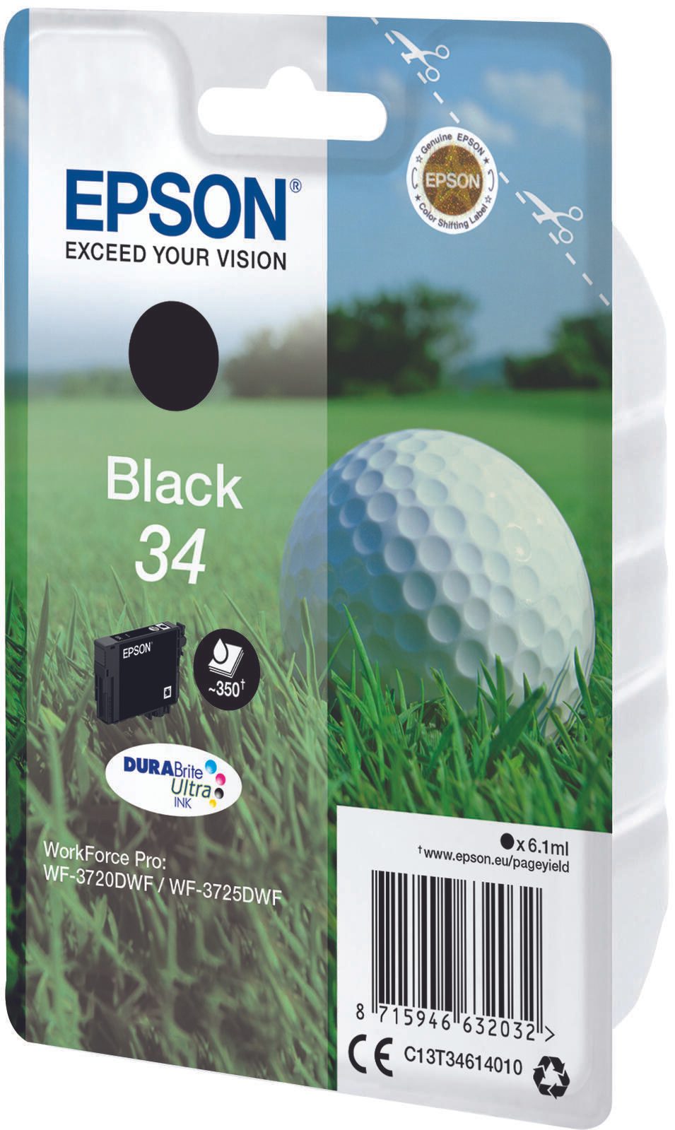Epson Original 34 Golfball Druckerpatrone schwarz 350 Seiten 6,1ml (C13T34614010)