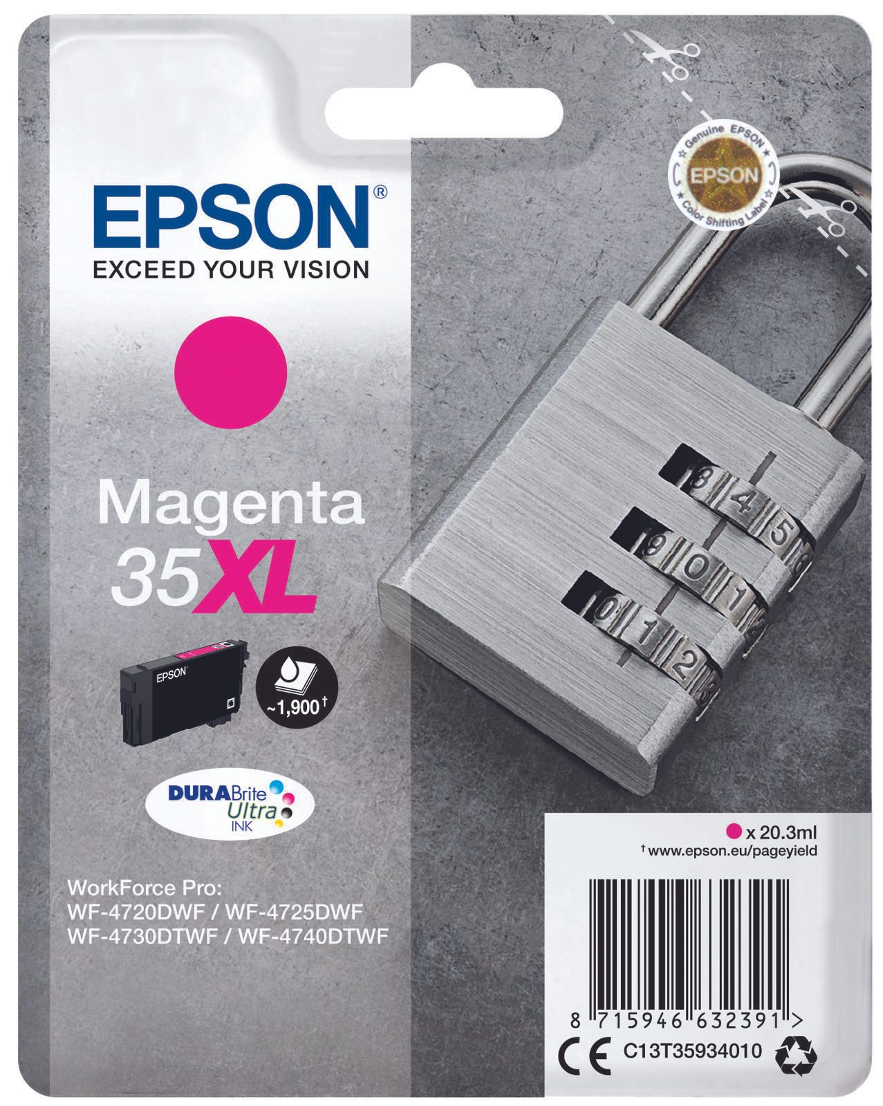 Epson Original 35XL Schloss Druckerpatrone magenta 1.900 Seiten 20,3ml (C13T35934010)
